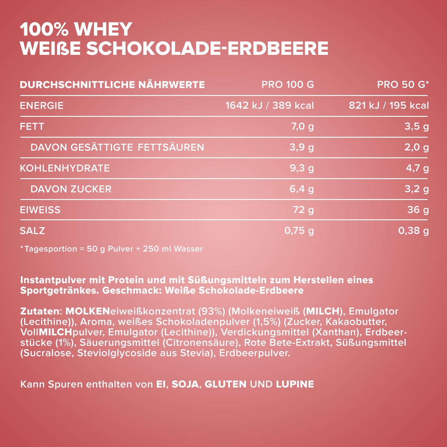 ²Eine Portion enthält 30 g Pulver und 200 ml Wasser oder Milch.³In unserem Designer Whey verwenden wir keinen zugesetzten Zucker, sondern setzen auf unbedenkliche