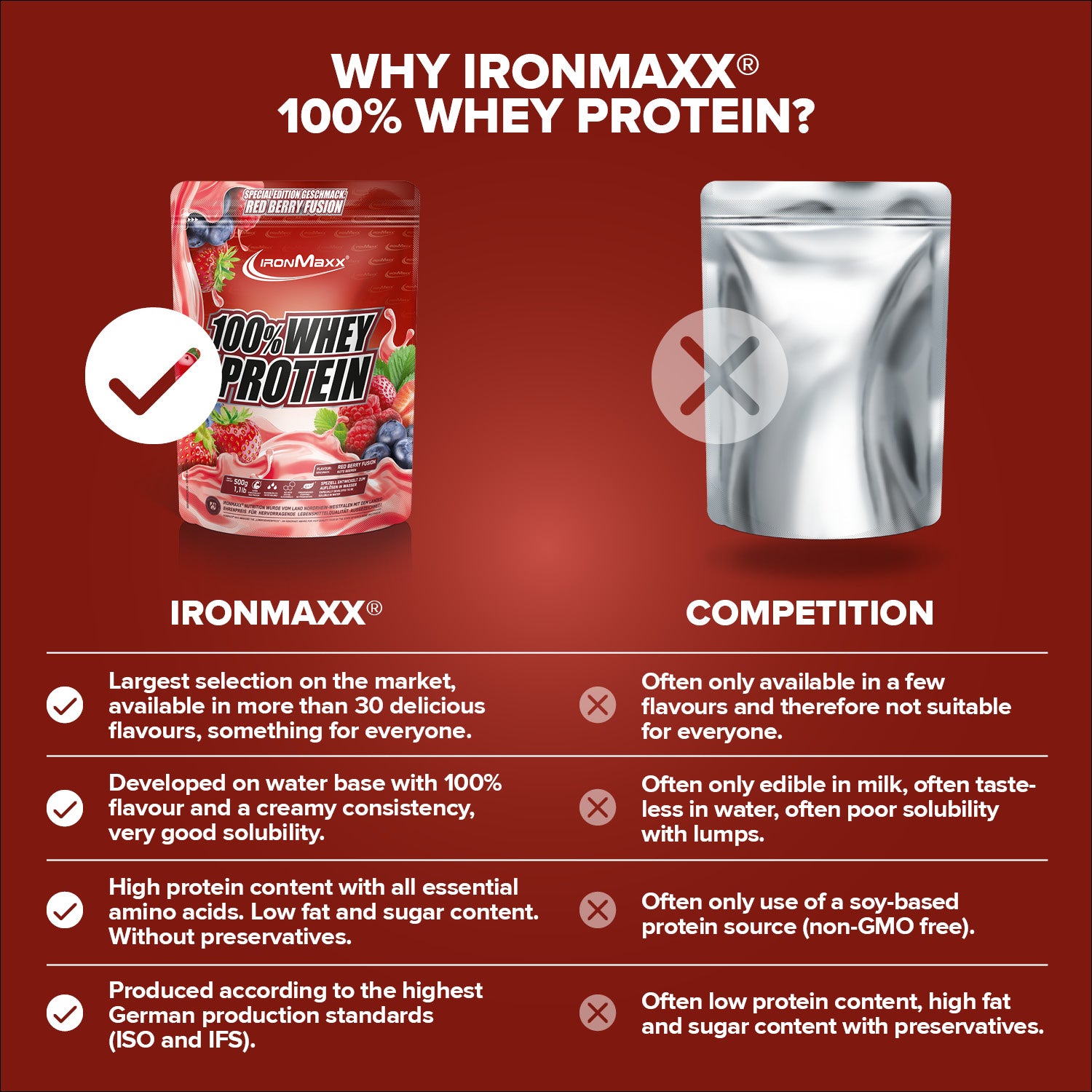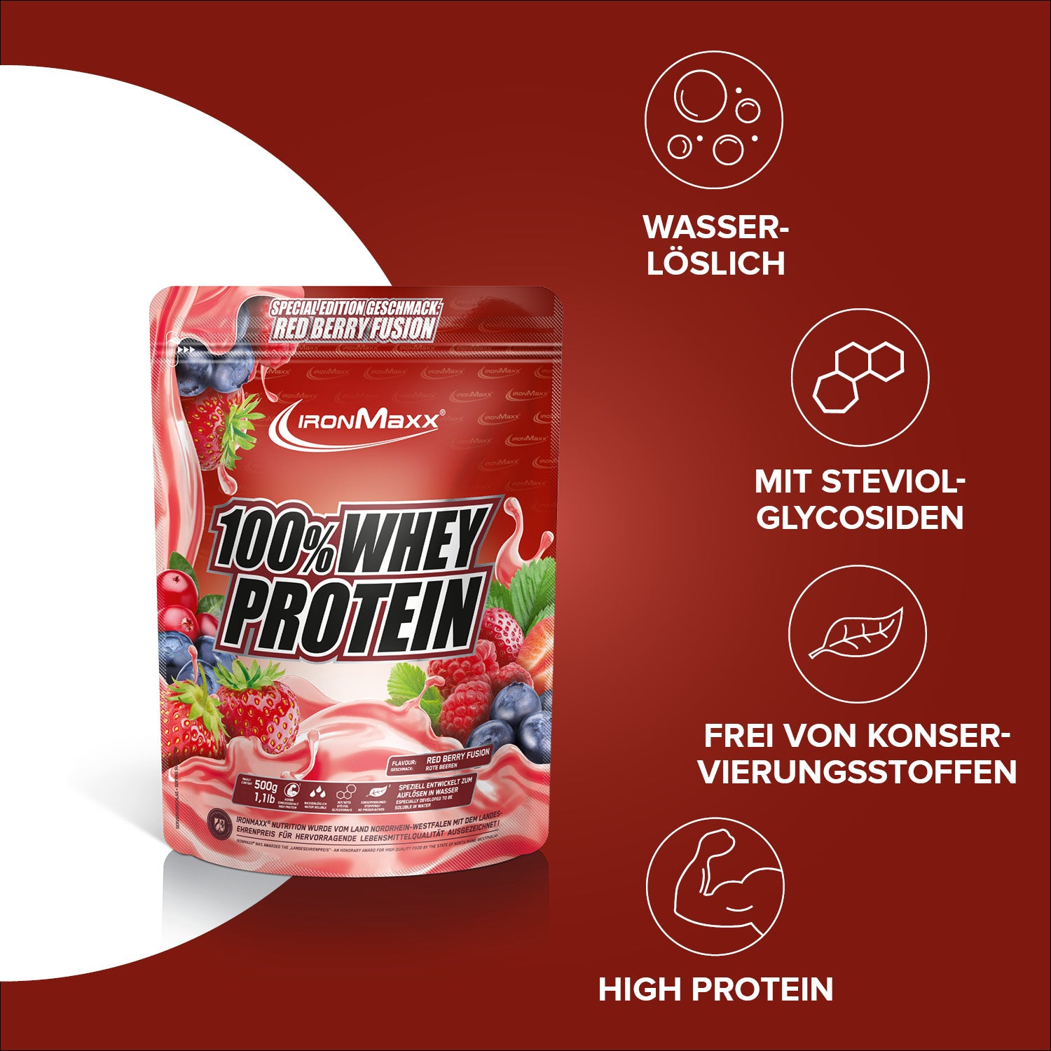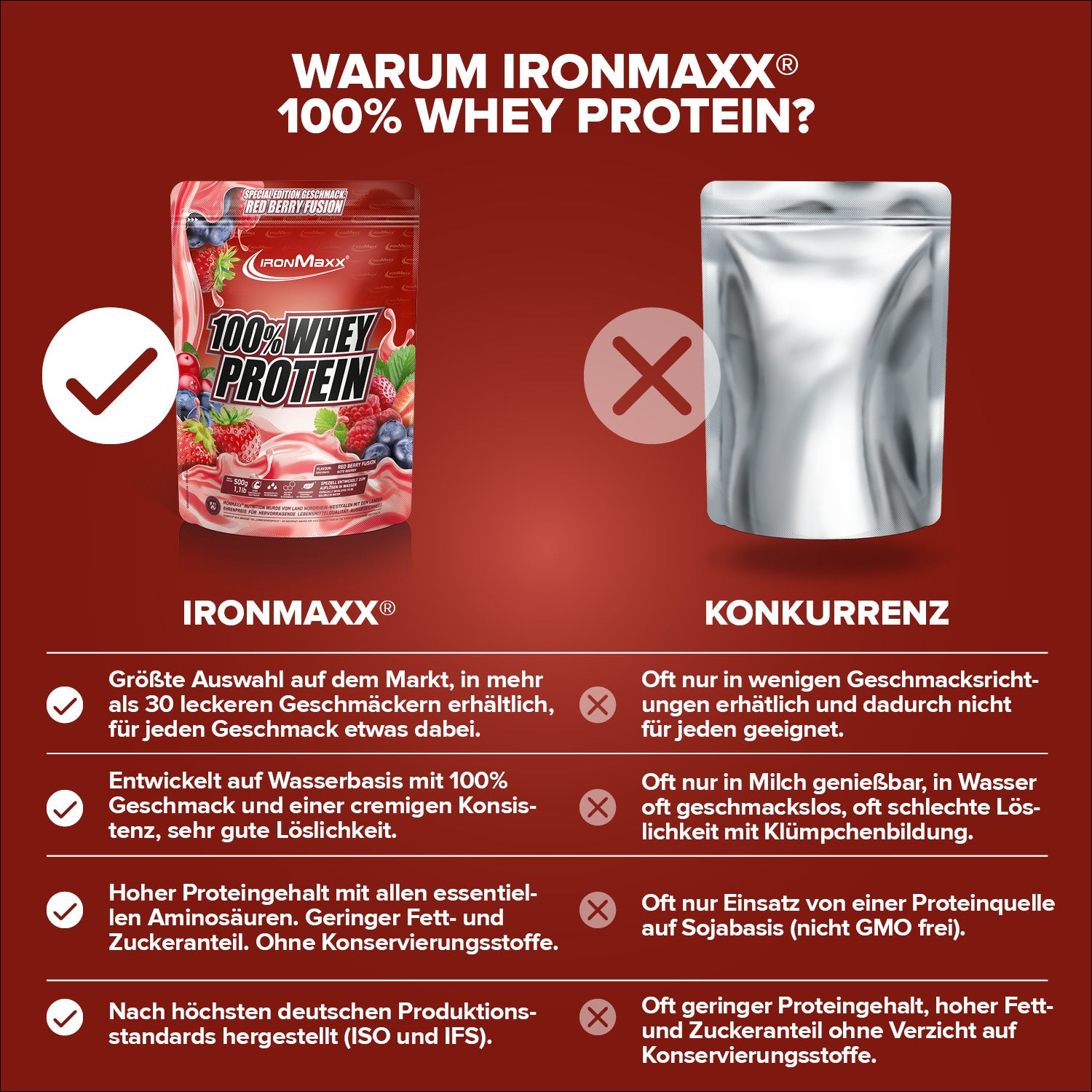 IronMaxx® 100% Whey Protein gehört zu den beliebtesten Eiweißshakes für Muskelaufbau, Regeneration und Diätphasen. Mit bis zu 80 % Eiweiß, einem vollständigen Aminosäurenprofil (inklusive BCAAs und EAAs) sowie einem cremigen Geschmack ist es der ideale Begleiter für deinen Fitnessalltag.