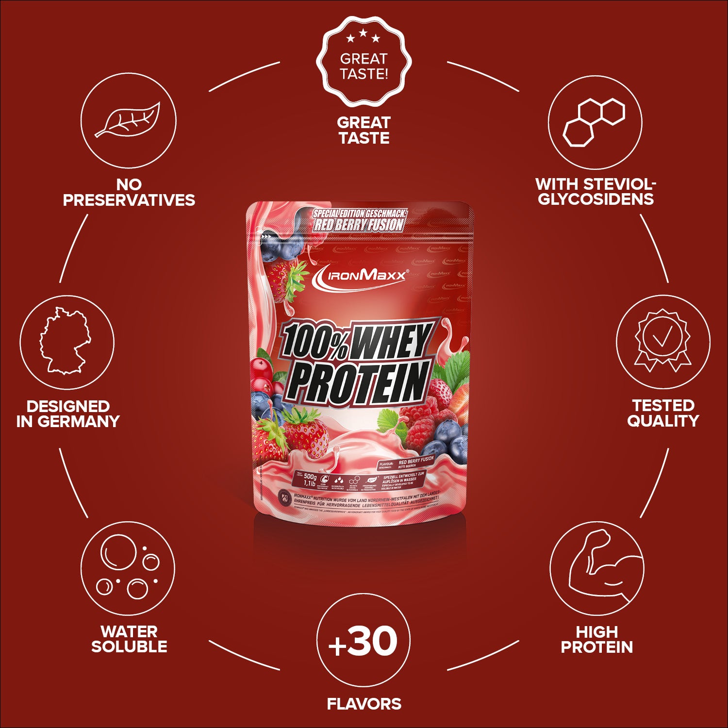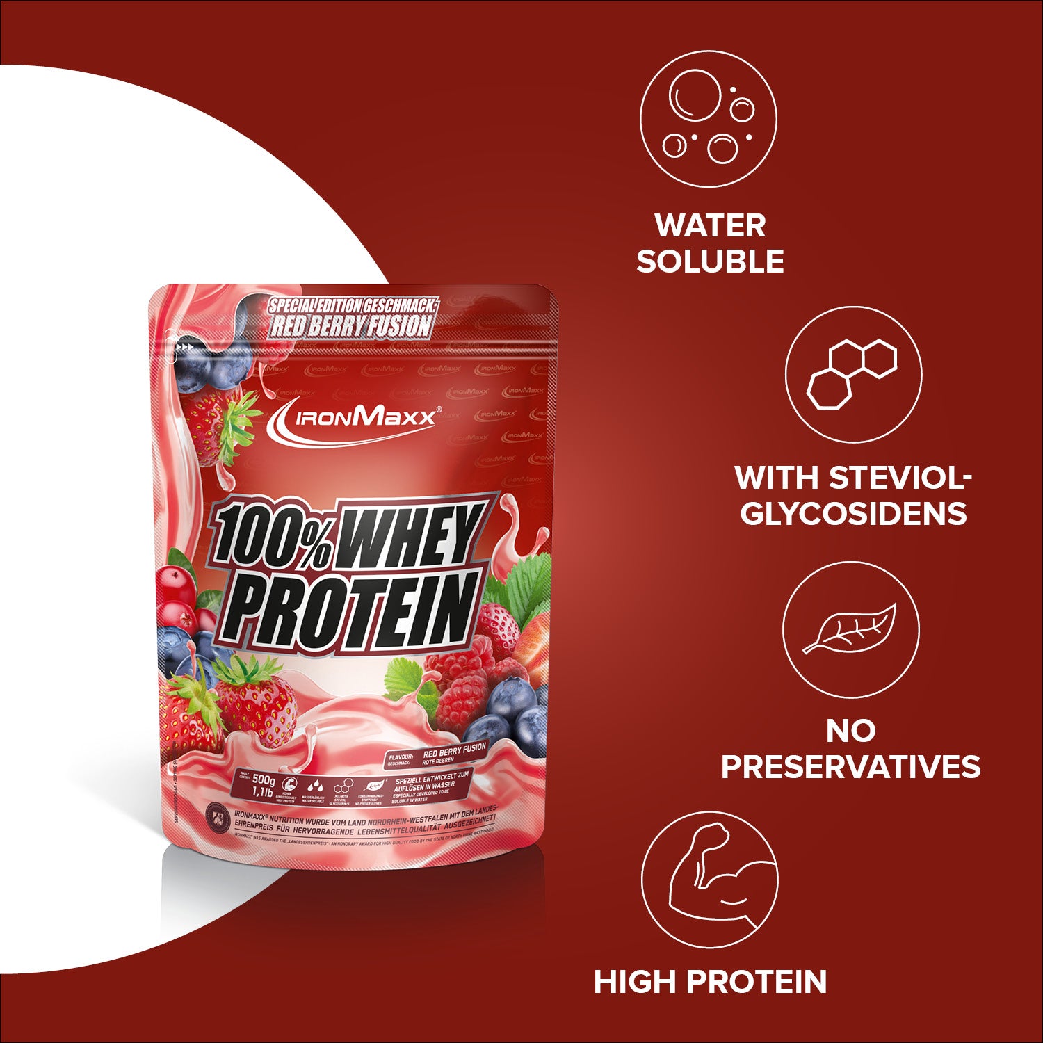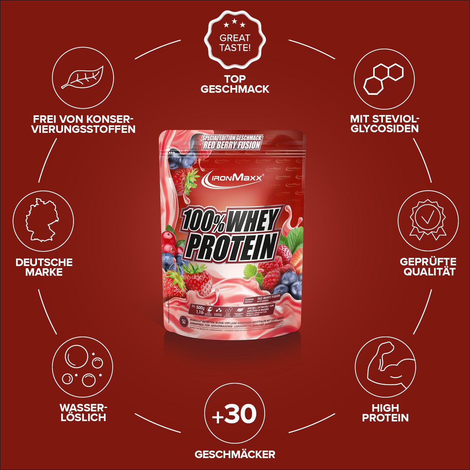 IronMaxx® 100% Whey Protein gehört zu den beliebtesten Eiweißshakes für Muskelaufbau, Regeneration und Diätphasen. Mit bis zu 80 % Eiweiß, einem vollständigen Aminosäurenprofil (inklusive BCAAs und EAAs) sowie einem cremigen Geschmack ist es der ideale Begleiter für deinen Fitnessalltag.