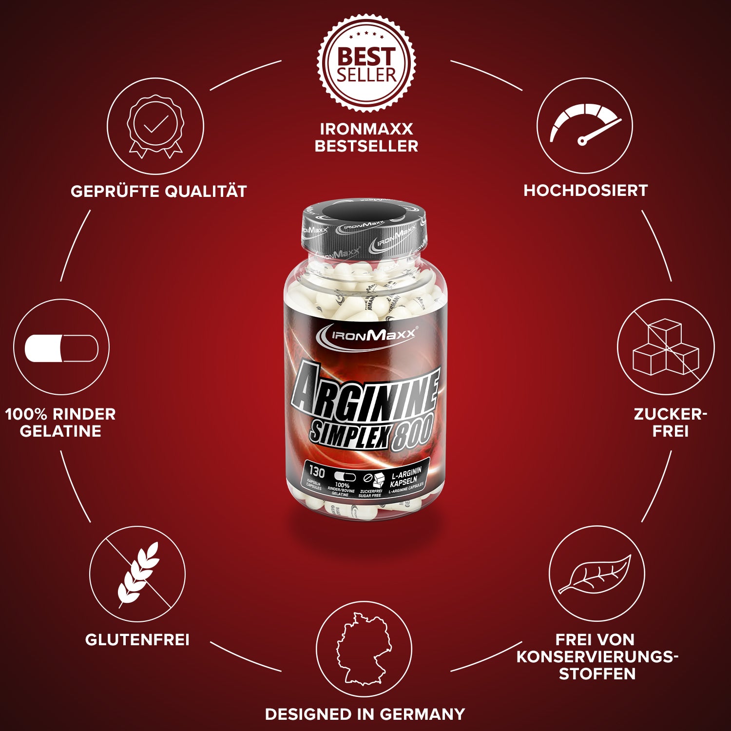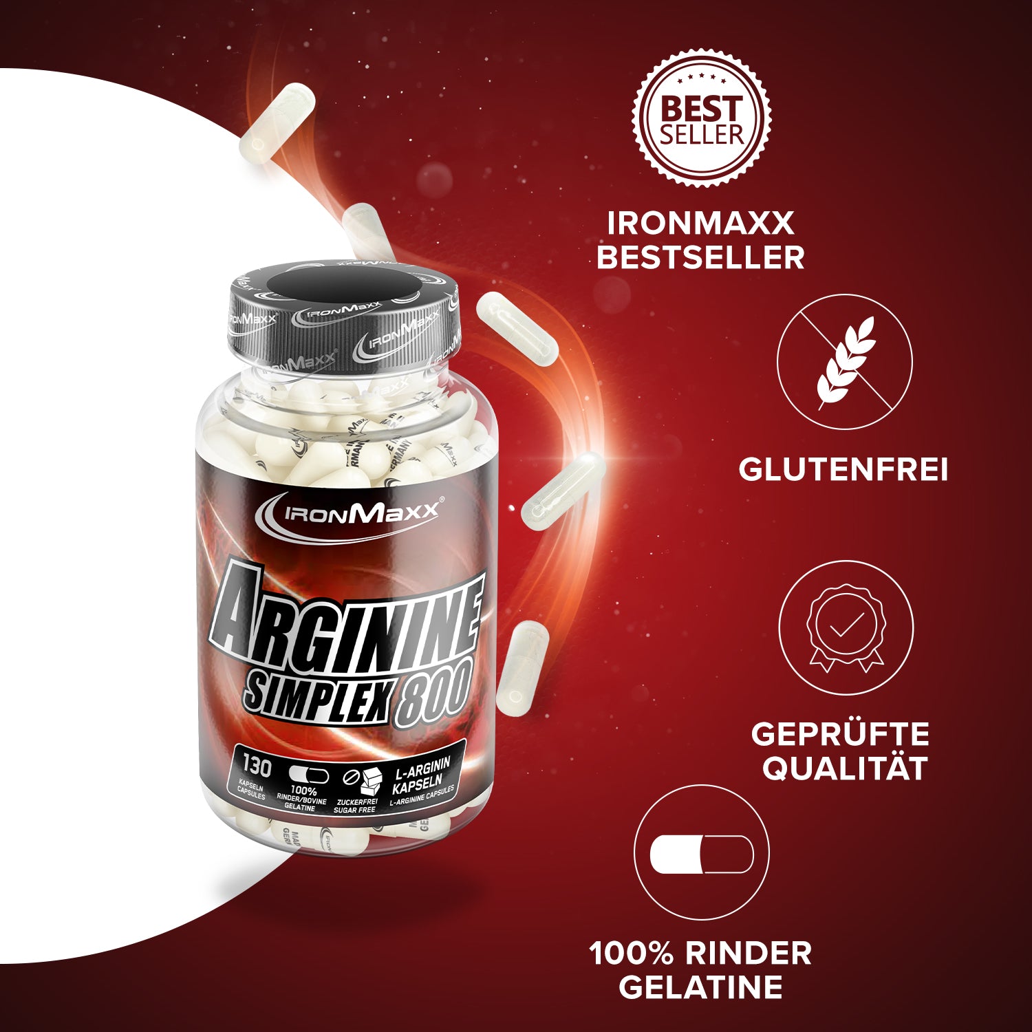 - IronMaxx® Arginin Kapseln entsprechen, wie alle Produkte von IronMaxx®, den hohen Qualitätsstandards und werden ständig qualitativ überprüft!