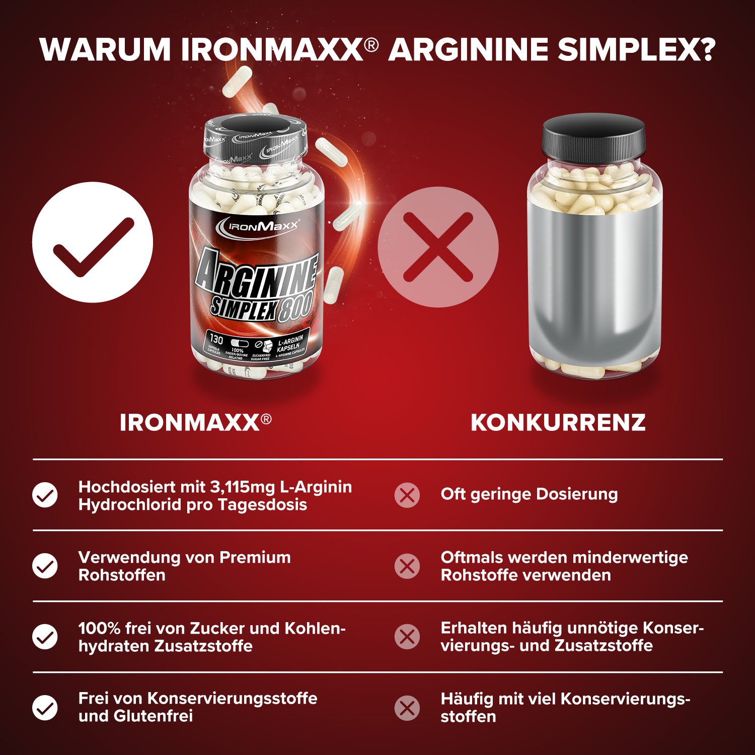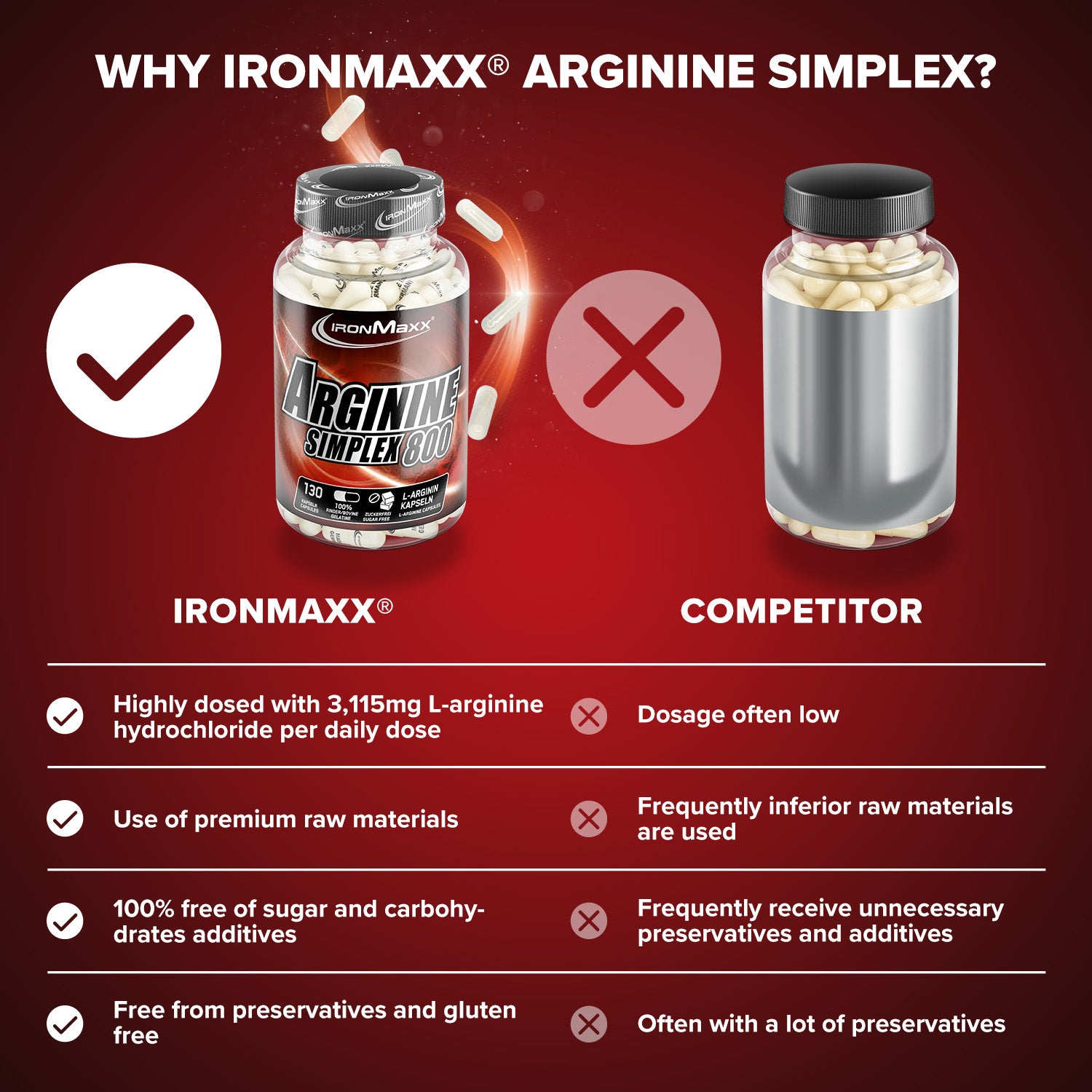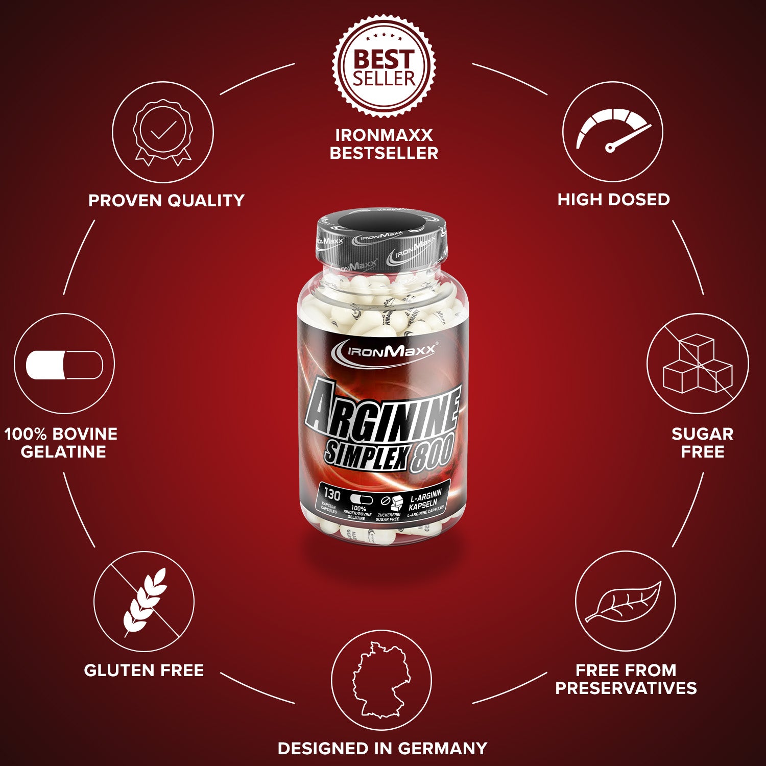 - Unser hochqualitatives IronMaxx® Arginin Simplex 800 versorgt deinen Körper mit der proteinogenen ?-Aminosäure L-Arginin