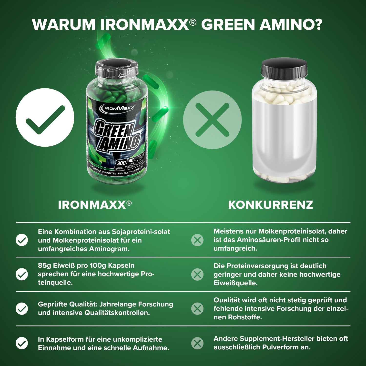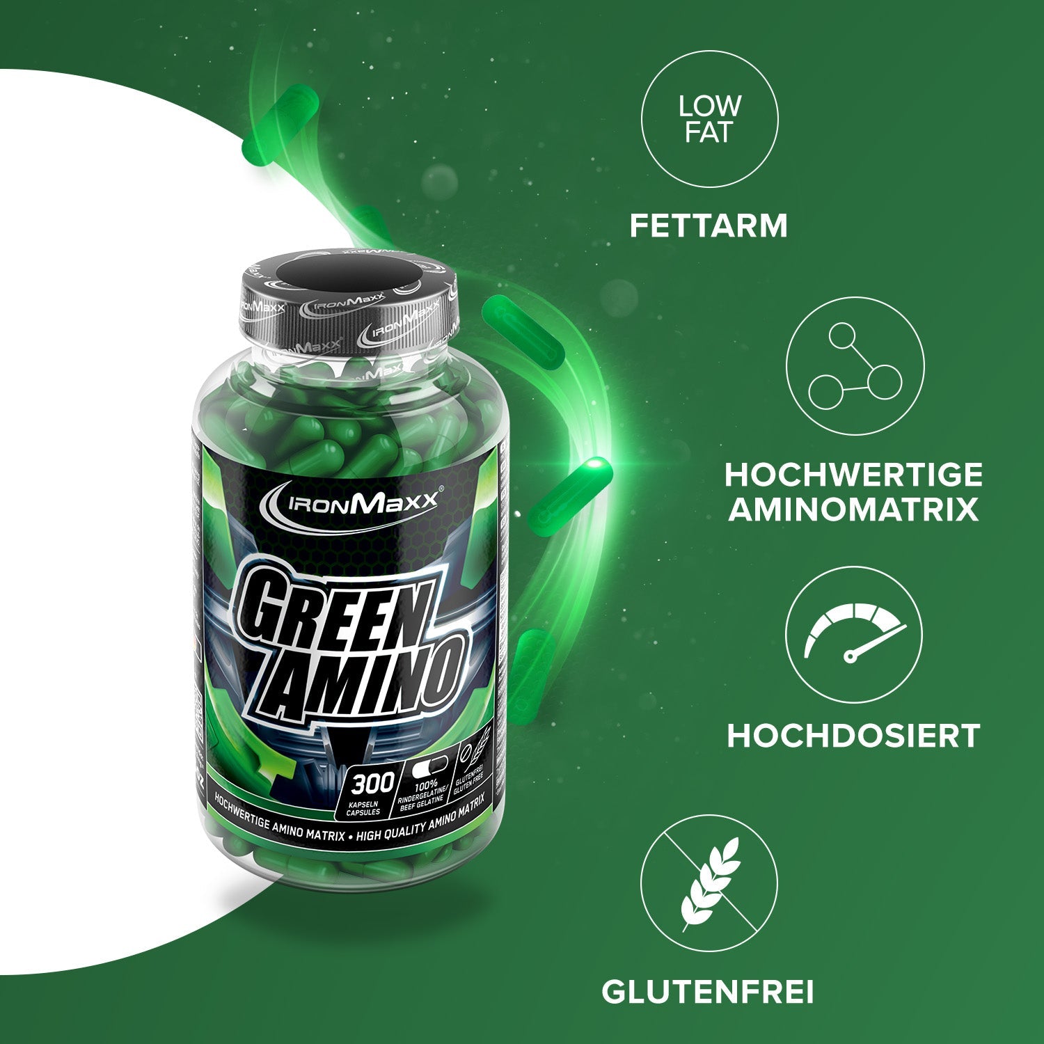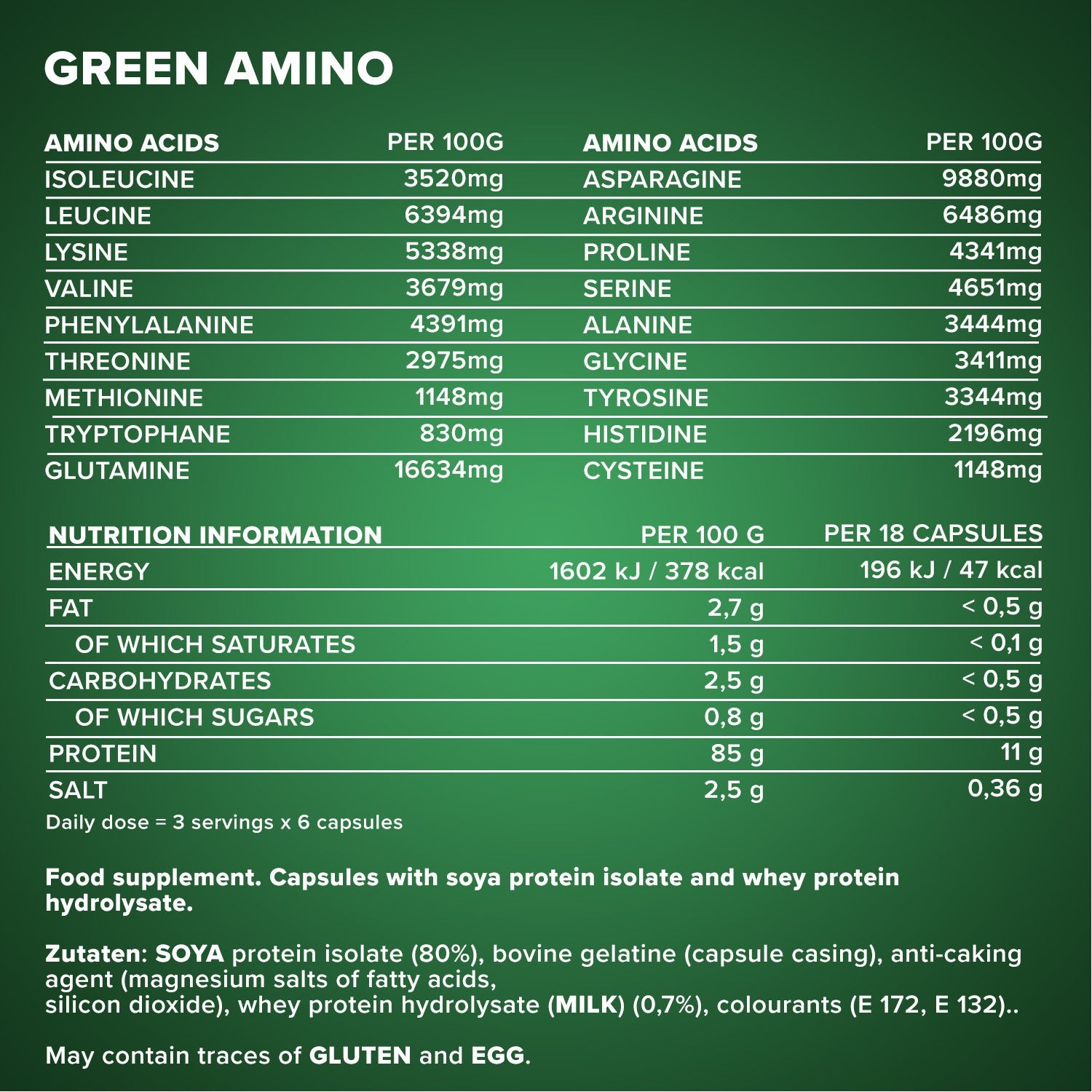 - Green Amino Kapseln mit Eiweißisolat und Eiweißhydrolysat