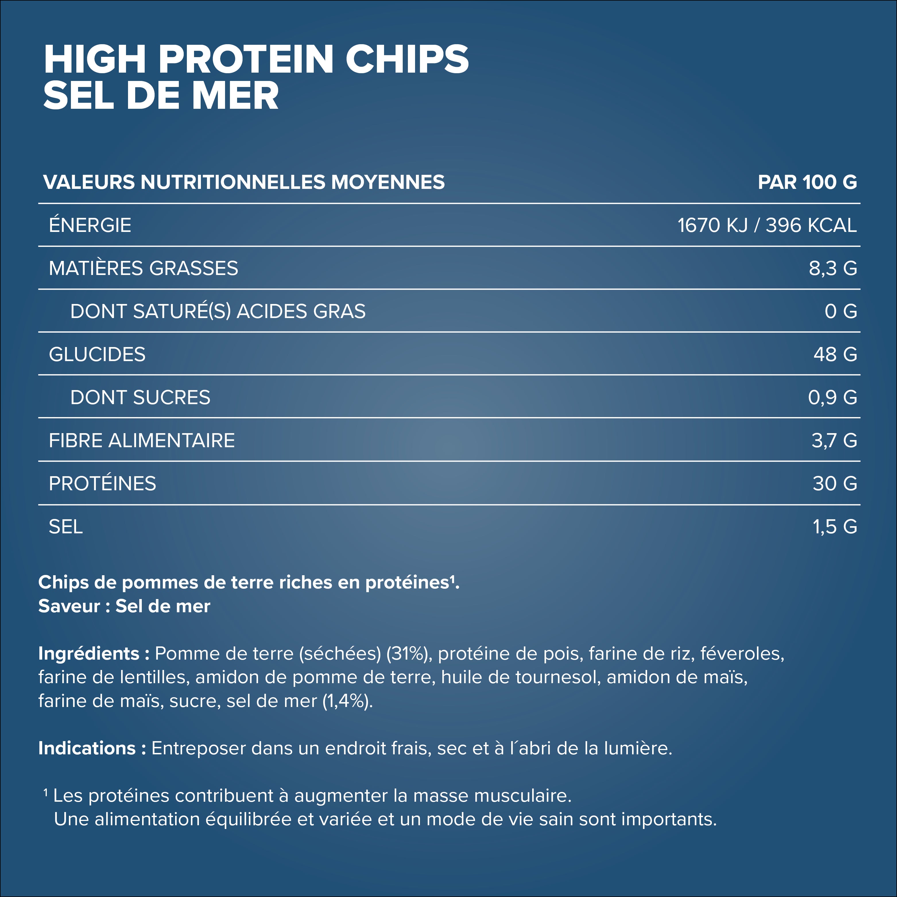 Verkehrsbezeichnung : Kartoffel-Chips mit hohem Proteingehalt.