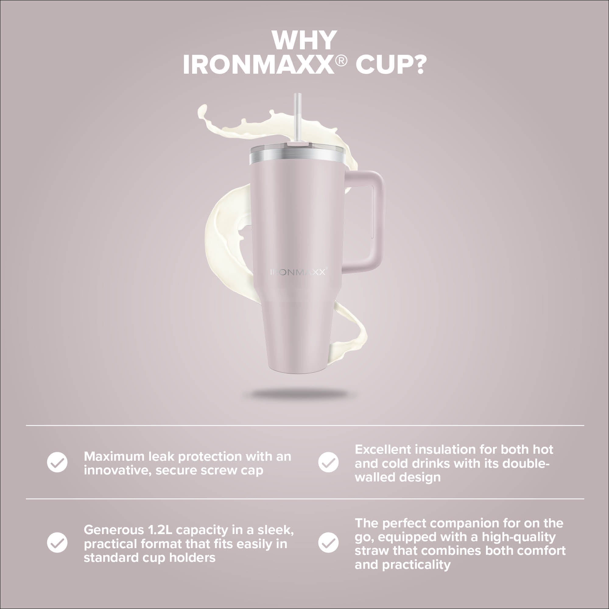 - Optimierte-Passform: Trotz großen Volumens passt der IronMaxx® Cup mit Griff perfekt in jede Standard-Getränkehalterung.