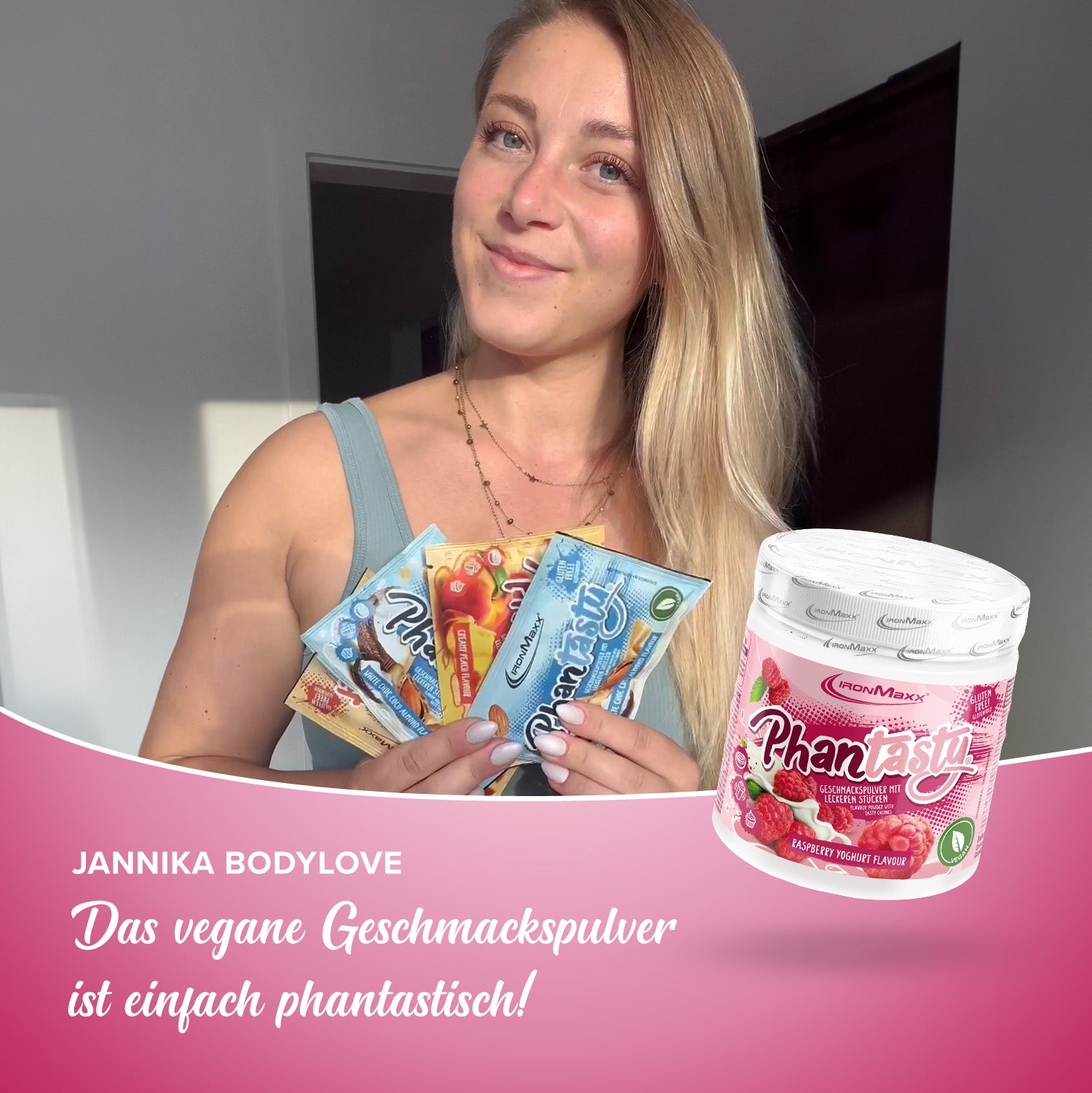 - Phantasty® Geschmackspulver – mit echten Frucht- oder Schokoladenstückchen für intensiven Geschmack.