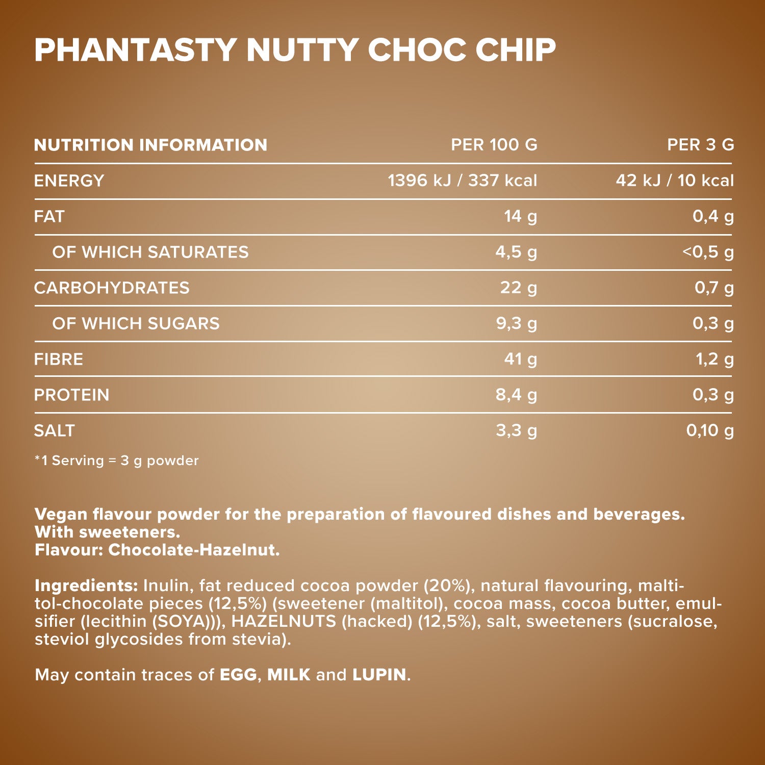Hinweis: Nicht als Ersatz für eine ausgewogene und abwechslungsreiche Ernährung sowie gesunde Lebensweise verwendbar. Dieses Produkt kann trotz sorgfältiger Kontrollen Schalenteile enthalten. Die Nährwerte beziehen sich nur auf das Phantasty Aromapulver. Hinzugefügte Lebensmittel können die Nährwerte verändern.