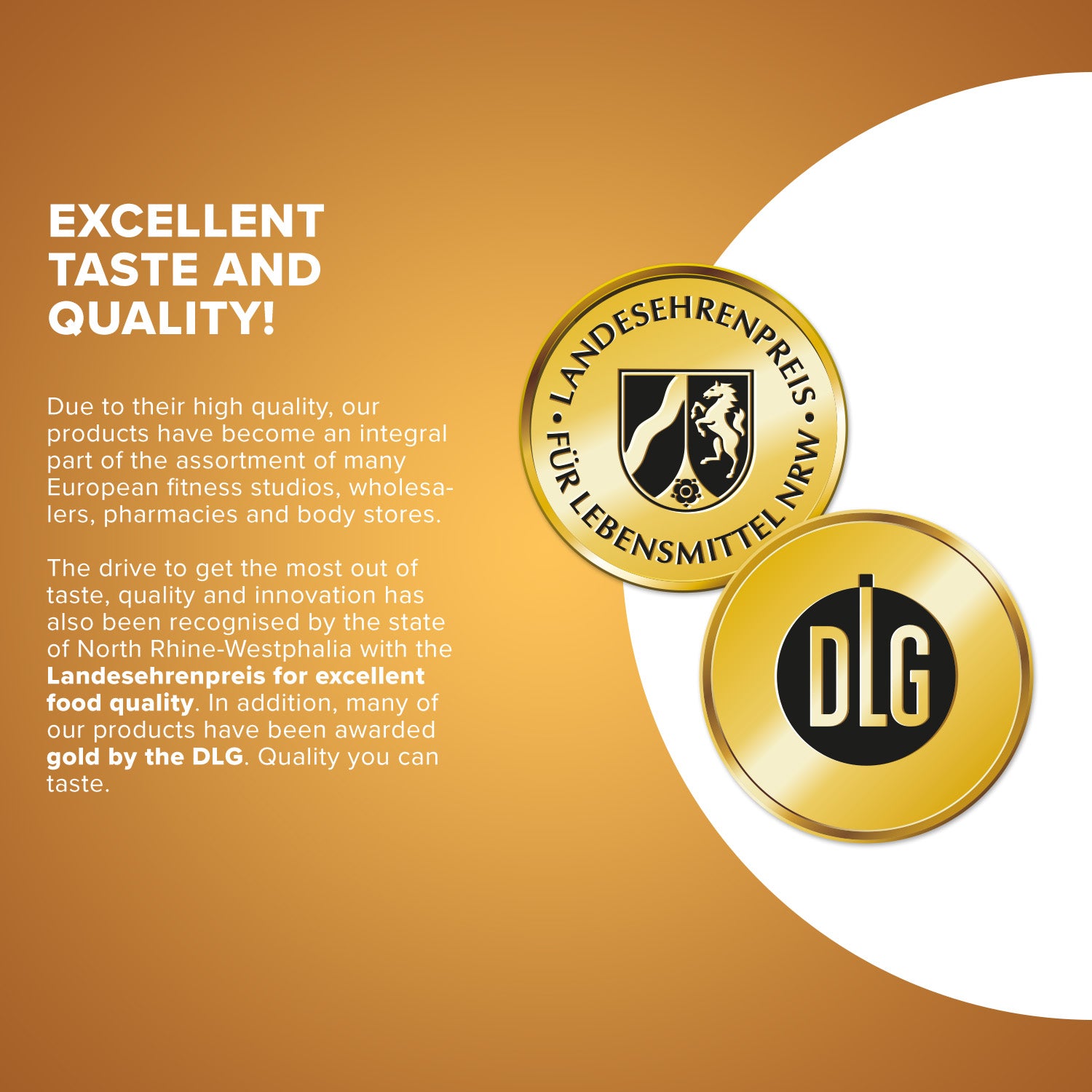 Hinweis: Kann bei übermäßigem Verzehr abführend wirken. Proteine tragen zu einer Zunahme an Muskelmasse bei. Nicht als Ersatz für eine ausgewogene und abwechslungsreiche Ernährung sowie eine gesunde Lebensweise verwendbar.