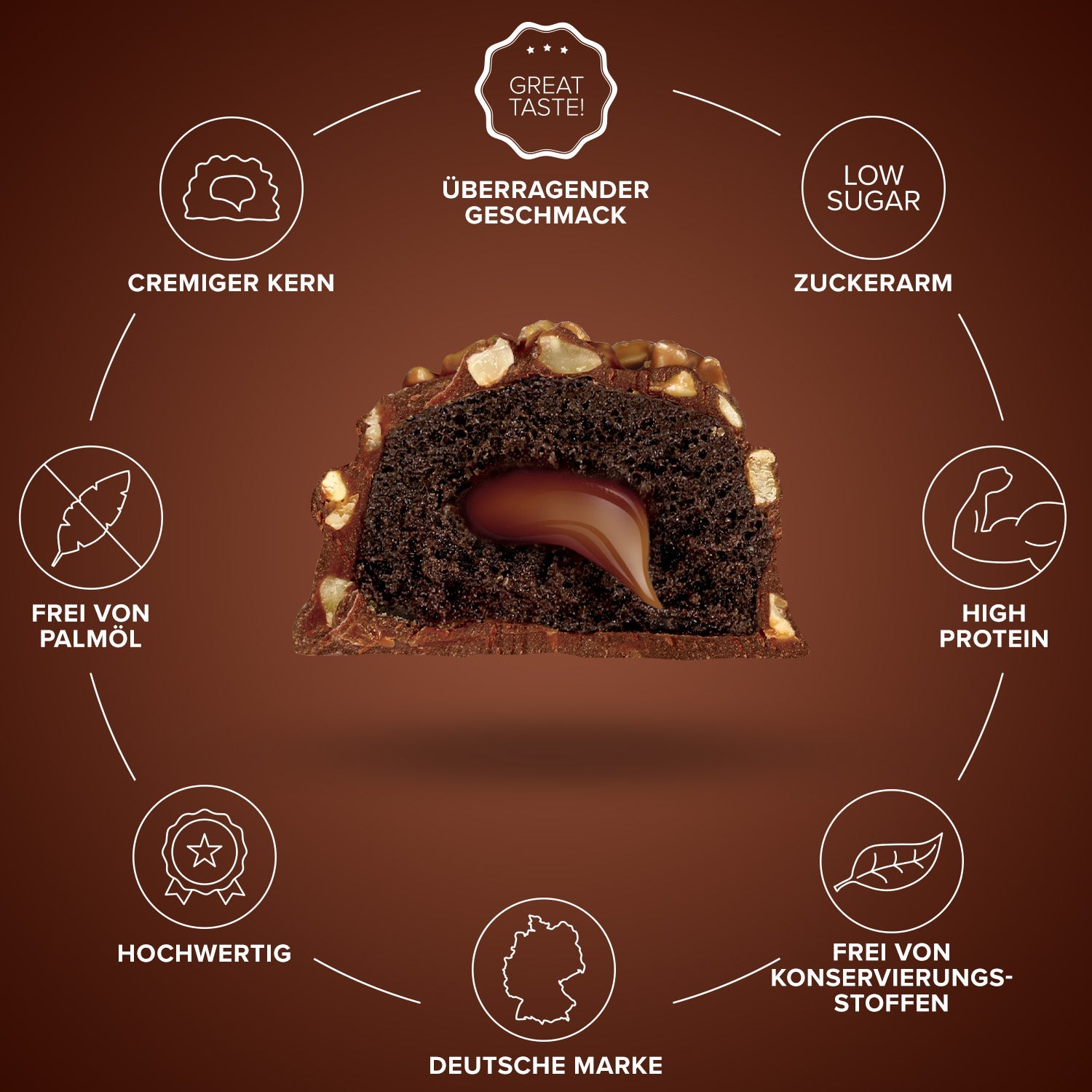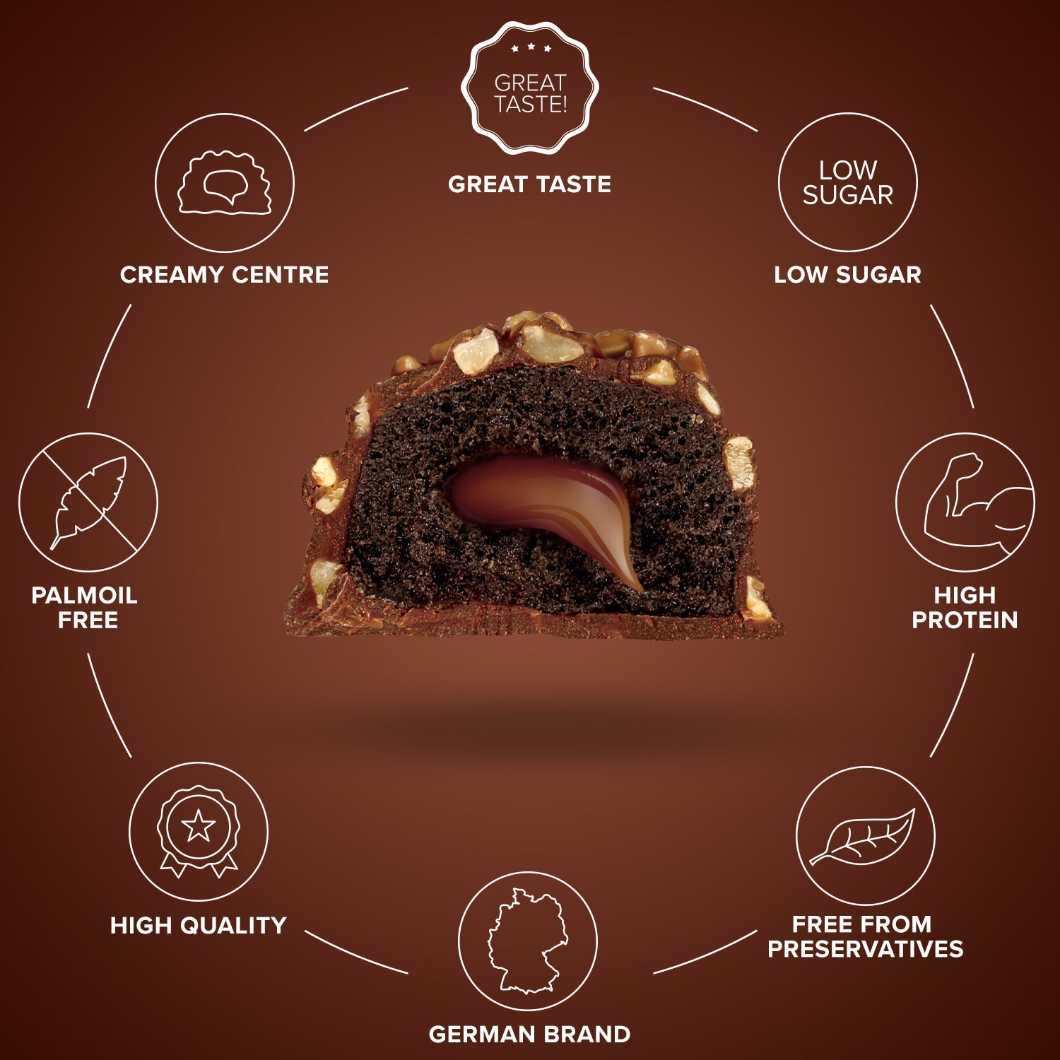 - Unvergleichlich cremig: Zarte Creme im Core, die auf der Zunge zergeht – „too good to be a protein bar“.