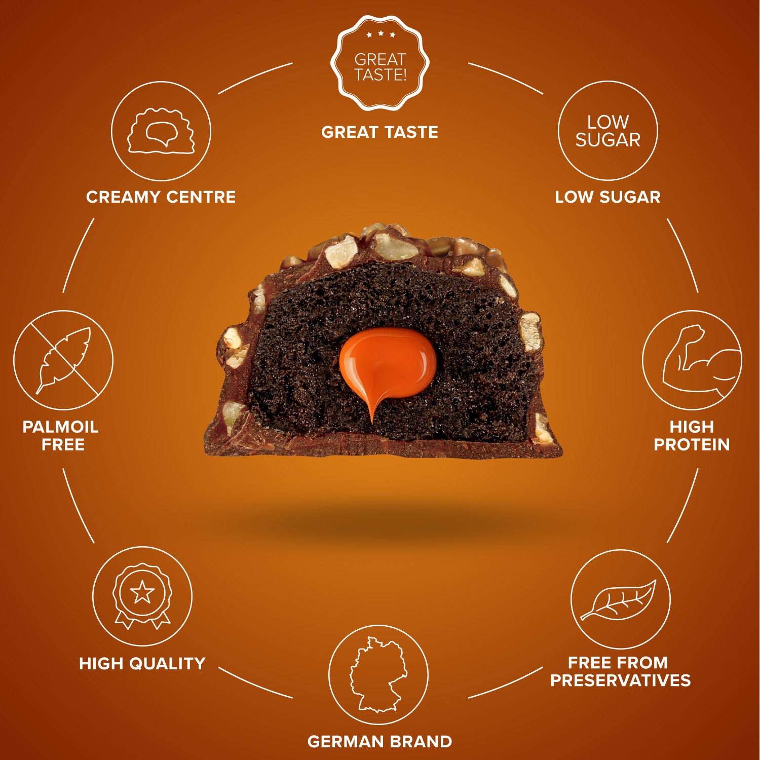 - Unvergleichlich cremig: Zarte Creme im Core, die auf der Zunge zergeht – „too good to be a protein bar“.