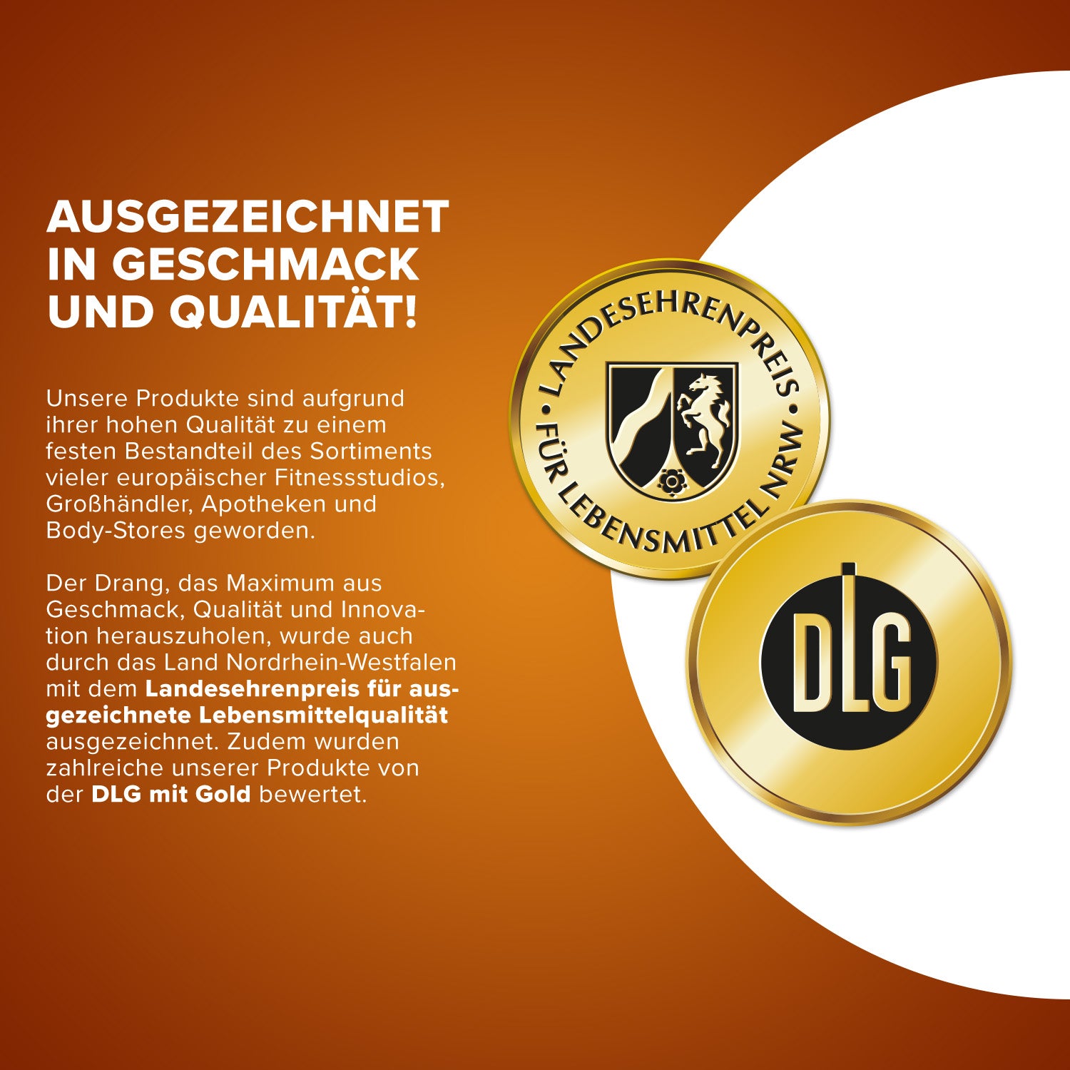 Hinweis: Kann bei übermäßigem Verzehr abführend wirken. Proteine tragen zu einer Zunahme an Muskelmasse bei. Nicht als Ersatz für eine ausgewogene und abwechslungsreiche Ernährung sowie eine gesunde Lebensweise verwendbar.