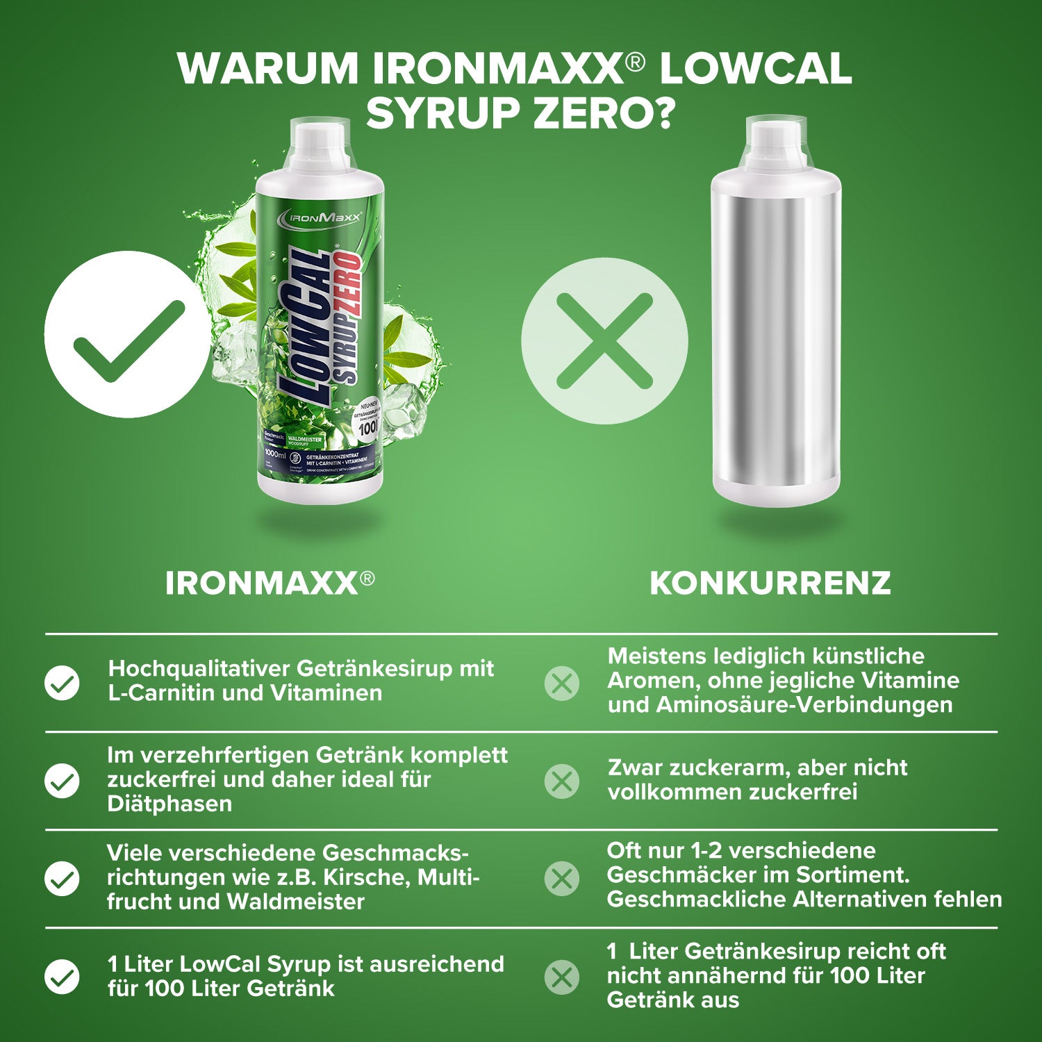 - IronMaxx® LowCal Syrup Zero ist ein hochwertiger, fruchtiger Getränkesirup, der sowohl für den Sport als auch für den Alltag entwickelt wurde