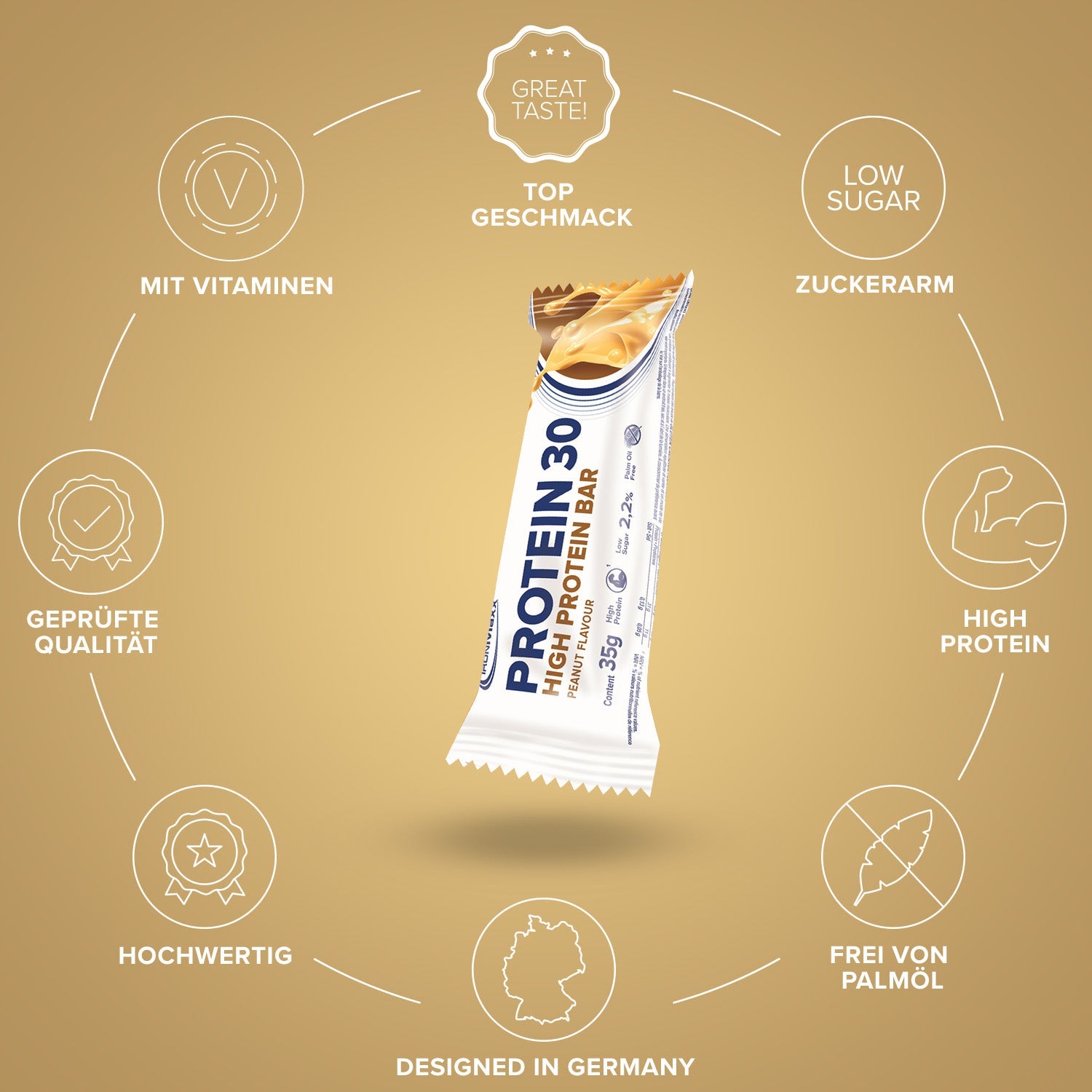 - Hoher Proteingehalt: Enthält 30 % Eiweiß pro 35 g Riegel – ideal für Muskelaufbau und Regeneration.