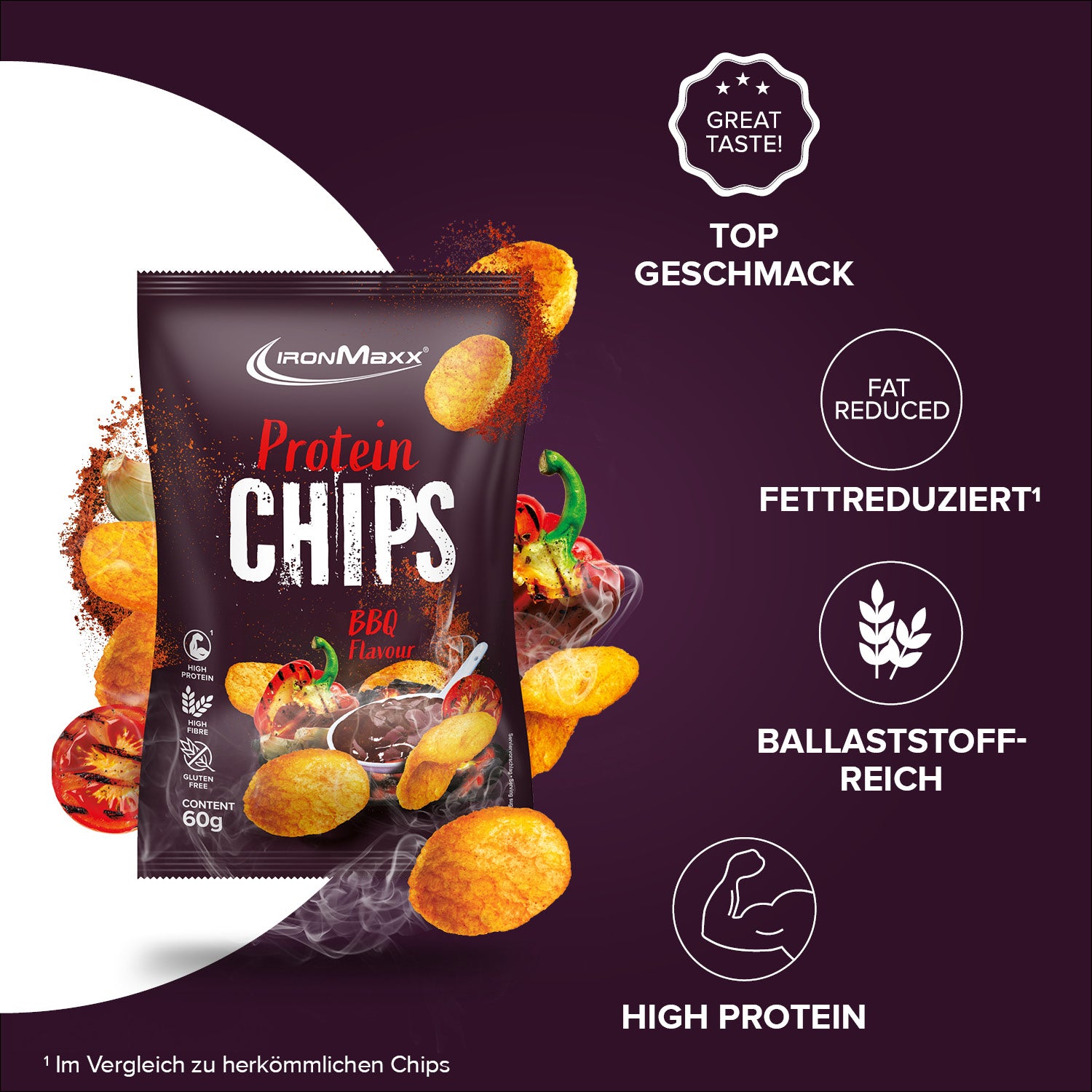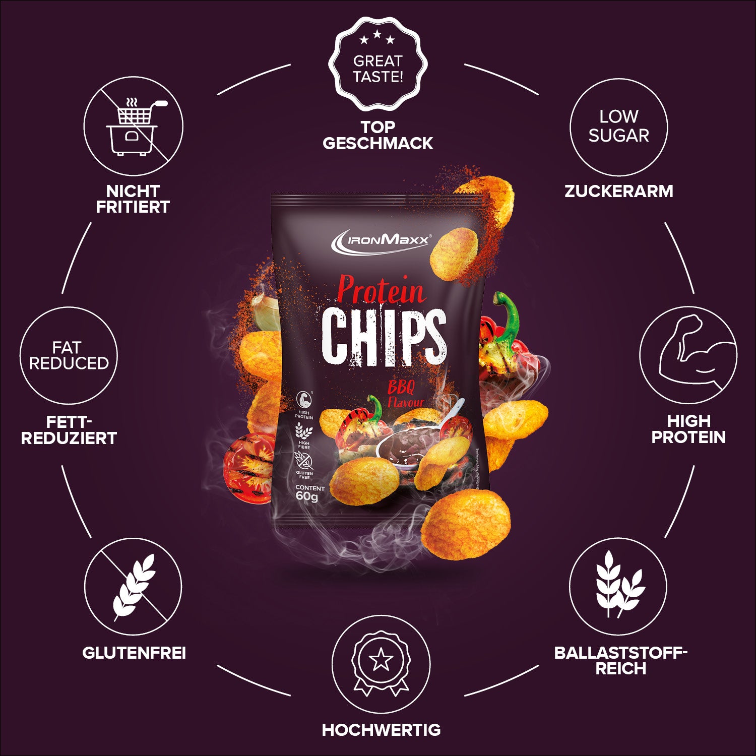 - High Protein Chips: Die IronMaxx® Protein Chips sind der perfekte Snack für Fitnessfans – proteinreich, kalorienarm und ideal für den Muskelaufbau.