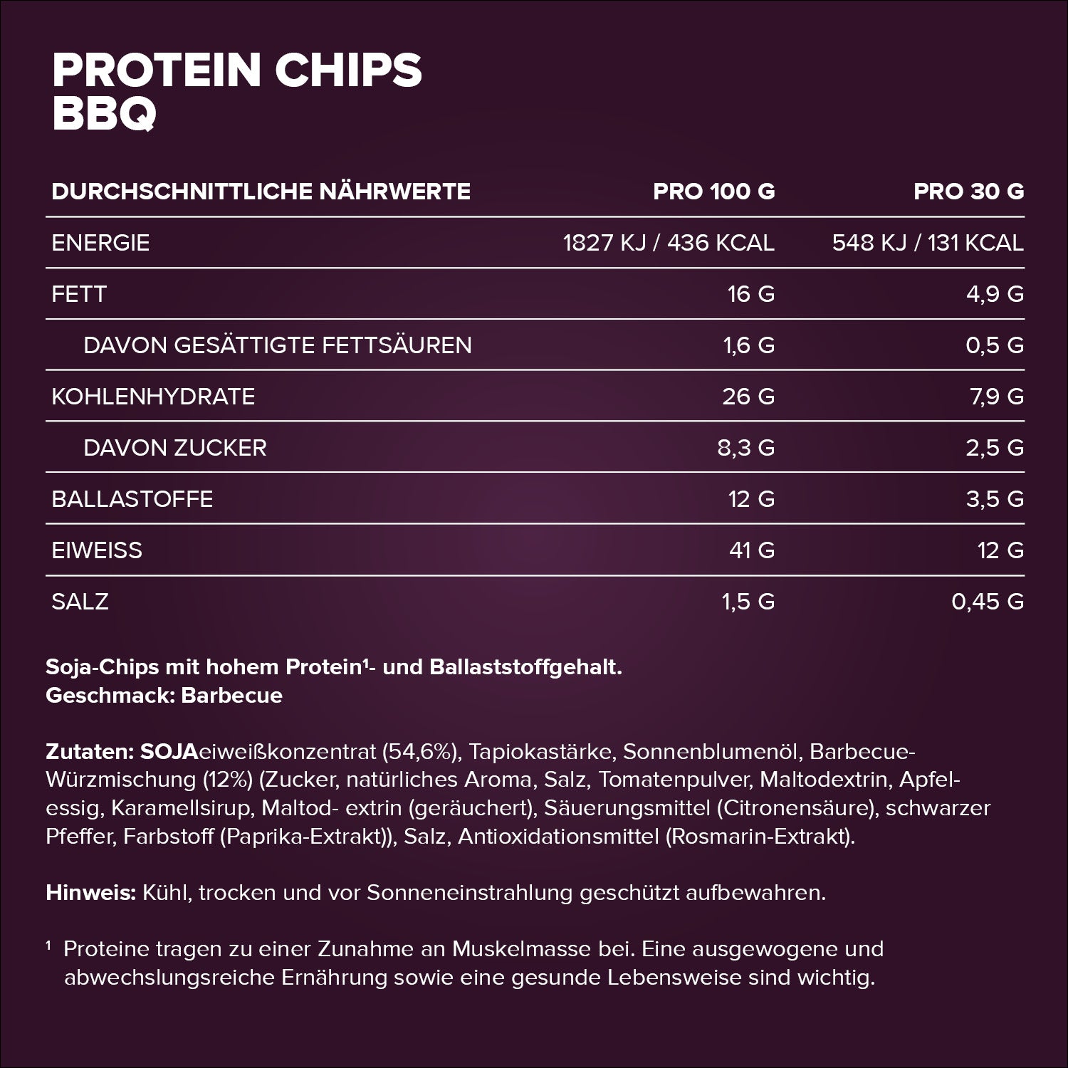 - Praktischer Inhalt: 60 g Protein Chips – ideal für Sportler, Snackliebhaber und alle, die gesunden Genuss mit vollem Geschmack suchen.