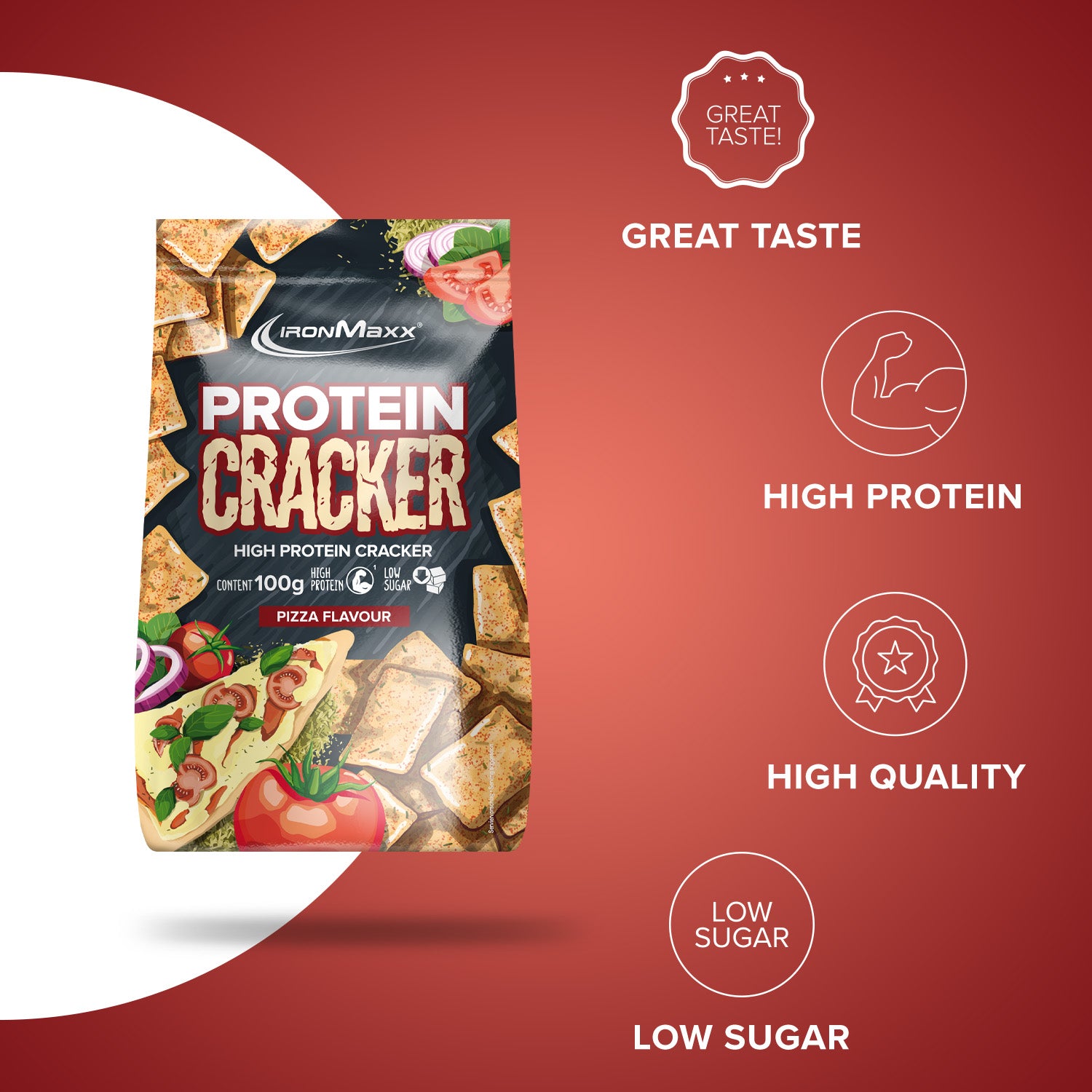 Die IronMaxx® High Protein Cracker sind der perfekte Snack für bewusste Genussmomente – besonders am Abend. Mit 21 g hochwertigem Eiweiß pro 100 g und nur 0,8 g Zucker pro Portion (50 g) unterstützen sie dich beim Muskelaufbau und beim Erreichen deiner Fitnessziele, ohne auf Geschmack zu verzichten.
