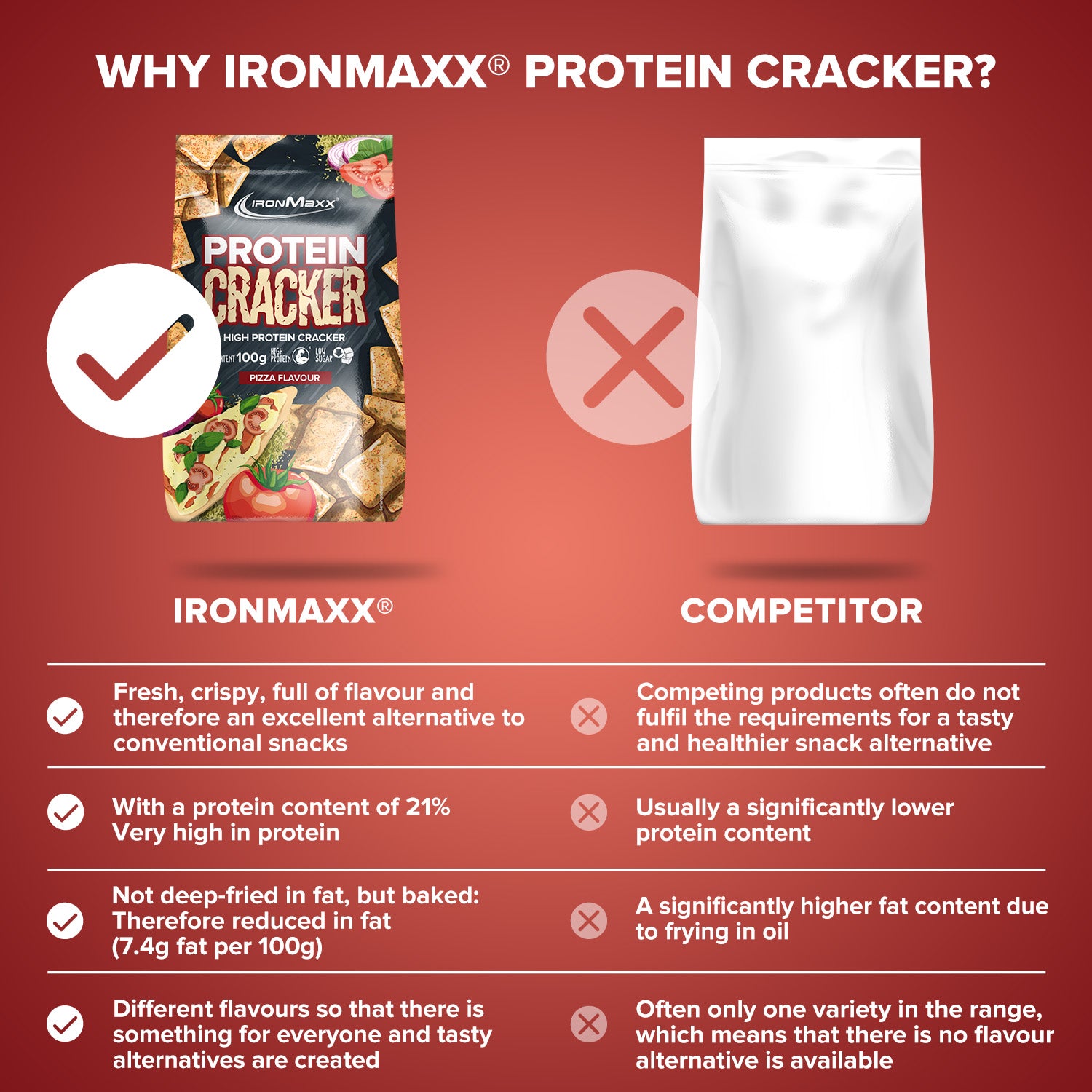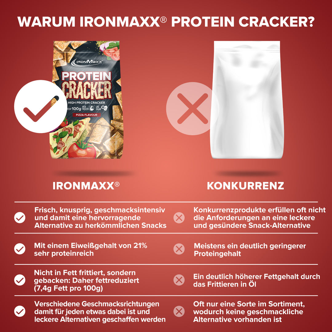 - Proteinreiche Snack-Alternative: Die Protein-Cracker von IronMaxx® sind perfekt für alle, die knusprig und gesund snacken möchten.