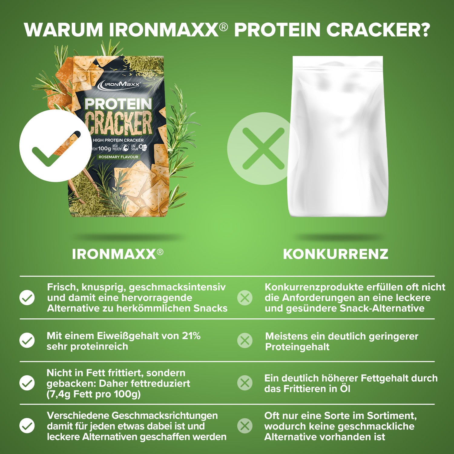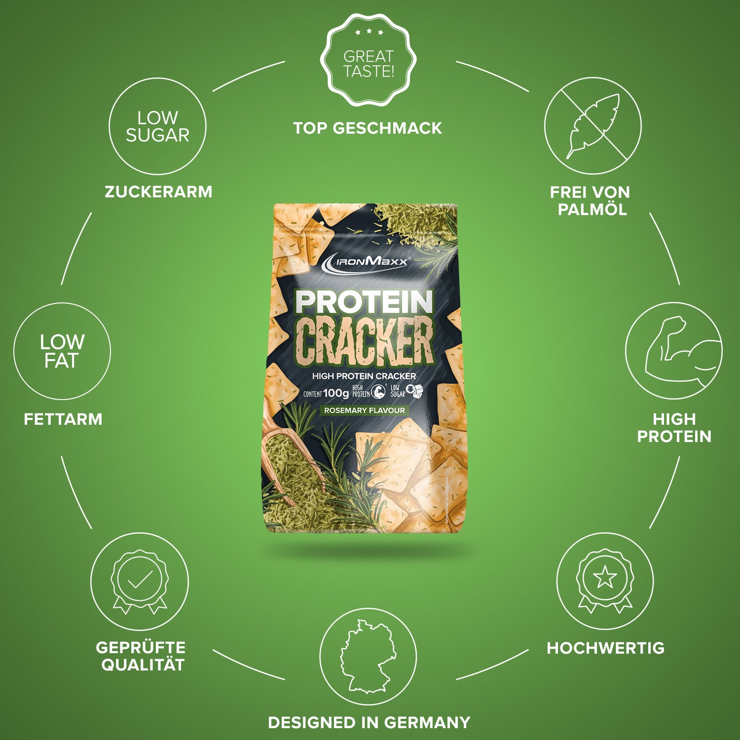 - Proteinreiche Snack-Alternative: Die Protein-Cracker von IronMaxx® sind perfekt für alle, die knusprig und gesund snacken möchten.