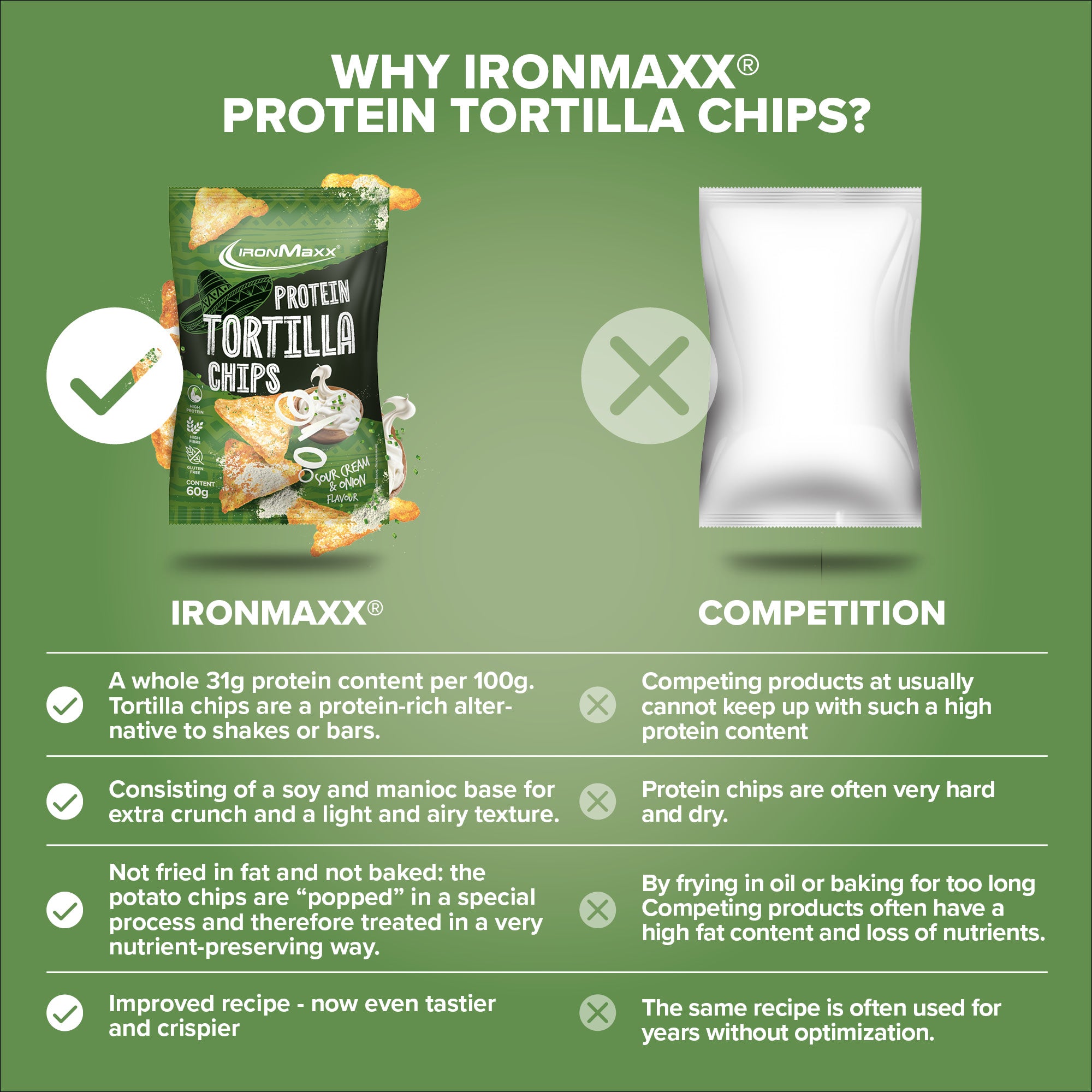 - Geschmacksintensiv & knusprig: Die Protein Tortilla Chips von IronMaxx vereinen würzigen Geschmack und Crunch – perfekt für gemütliche Abende, nach dem Workout oder zwischendurch.