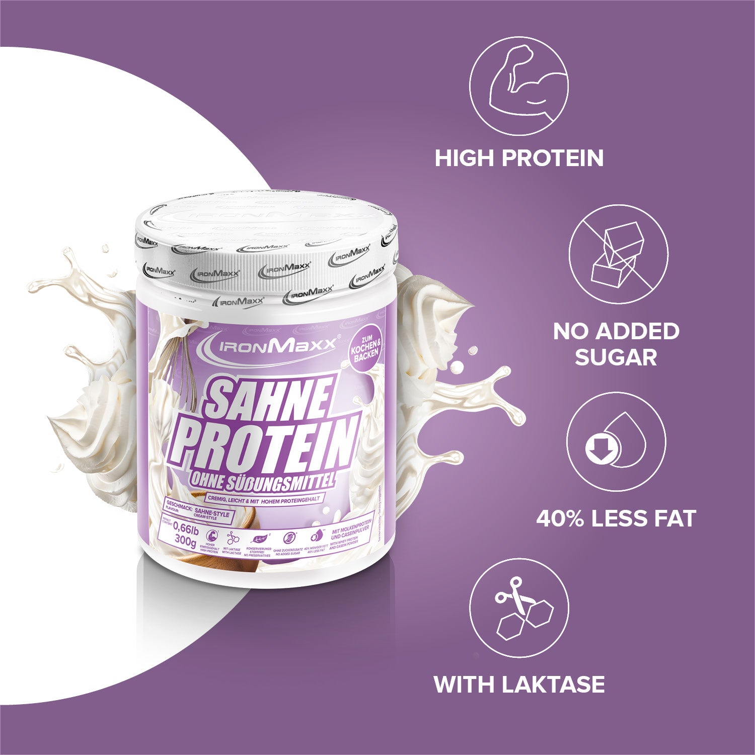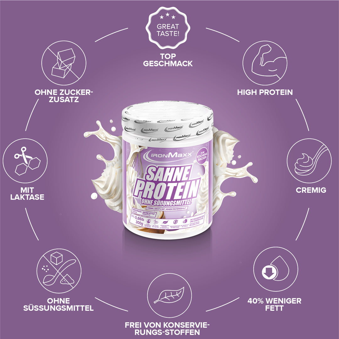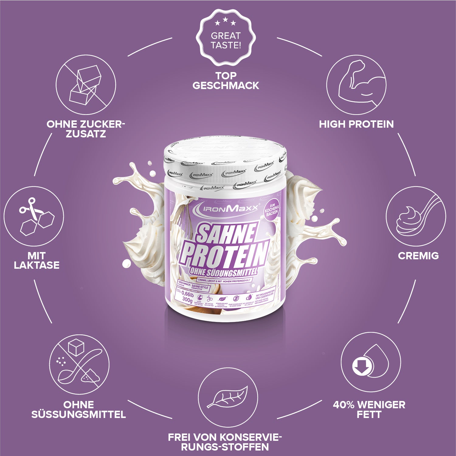 - Hoher Proteingehalt: Mit 76 g Protein pro 100 g ist das IronMaxx® Sahne Protein eine hervorragende Eiweißquelle für Muskelaufbau und -erhalt.