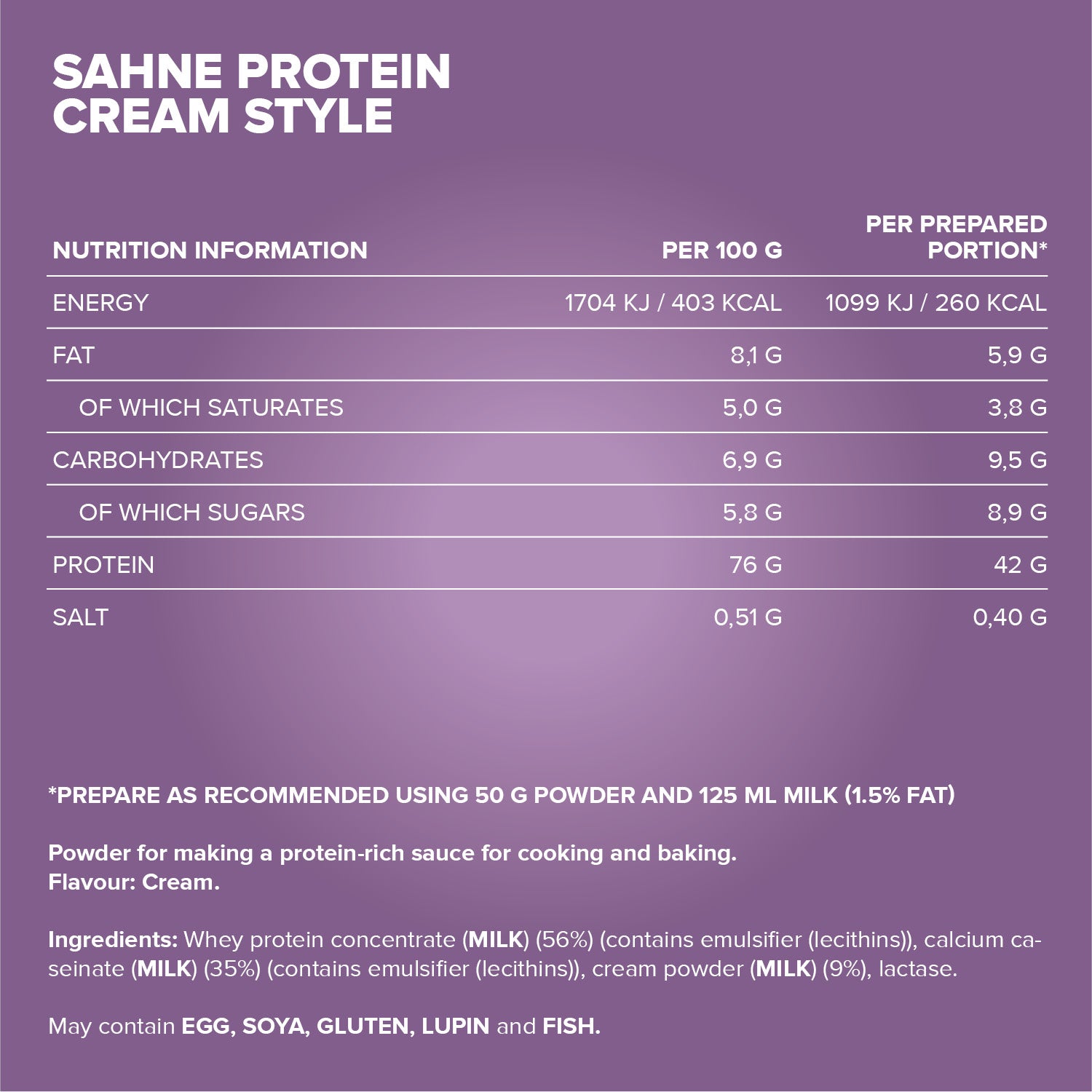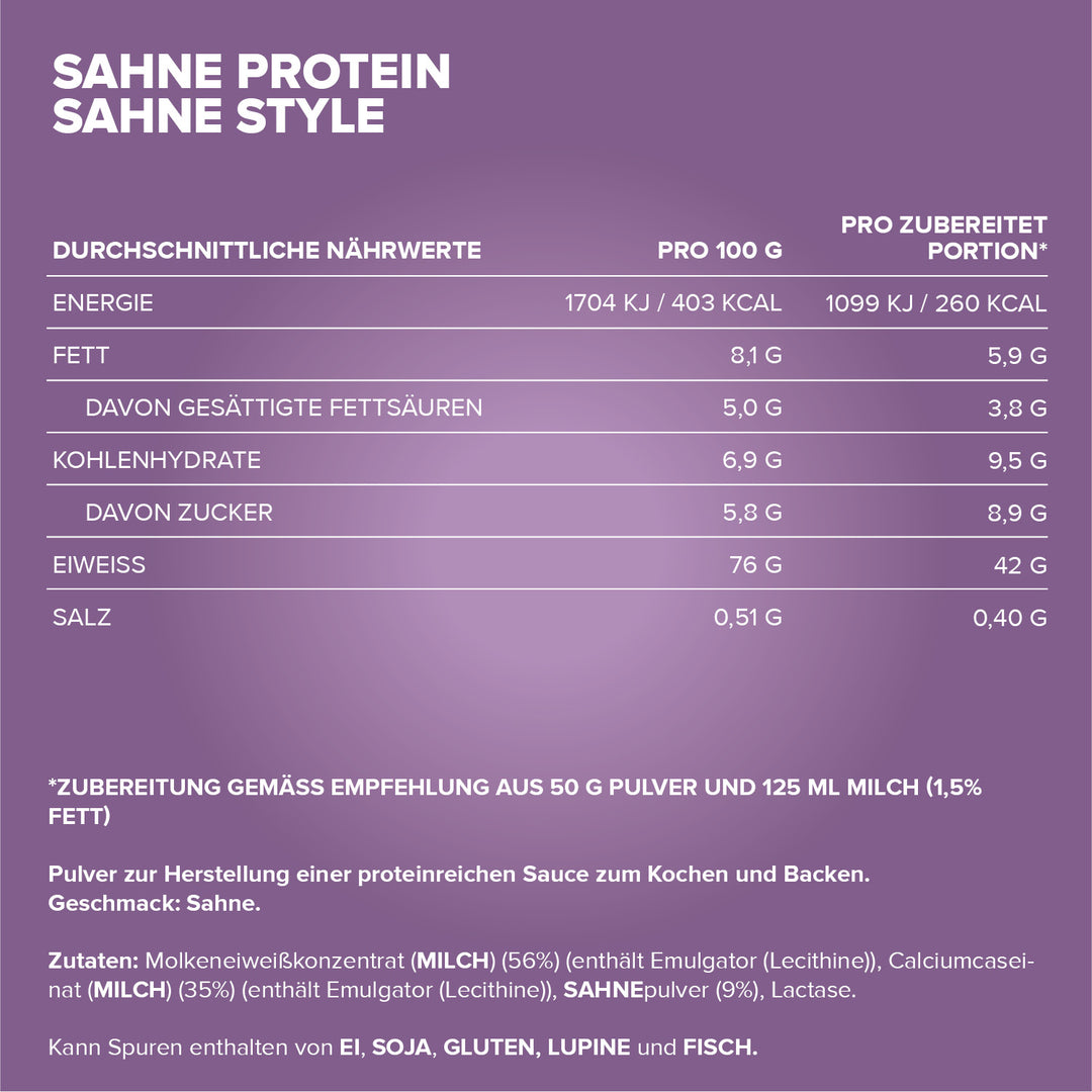 - Fettreduziert: Zubereitet enthält das Sahne Protein bis zu 40 % weniger Fett als herkömmliche Kochsahne – ideal für eine kalorienbewusste Ernährung.