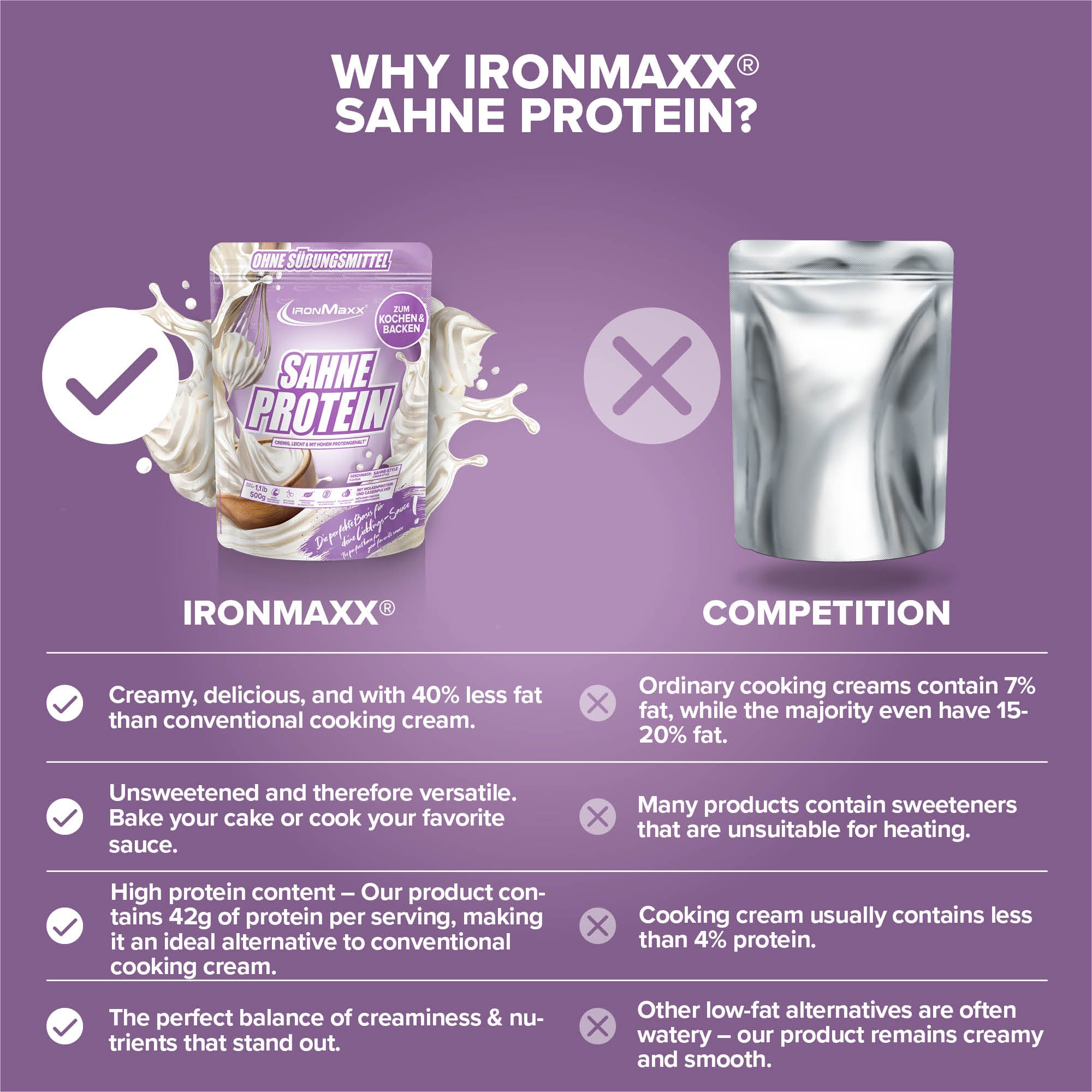 Ob für herzhafte Saucen, cremige Suppen oder leckere Aufläufe – das Sahne Protein sorgt für vollen Geschmack und eine angenehme Konsistenz, ganz ohne schlechtes Gewissen. Ideal für Sportler, Figurbewusste oder alle, die ihren Gerichten einen proteinreichen und fettarmen Boost verleihen möchten. Mit IronMaxx® bringst du Genuss und Funktionalität in perfekte Balance – kochen war noch nie so leicht!