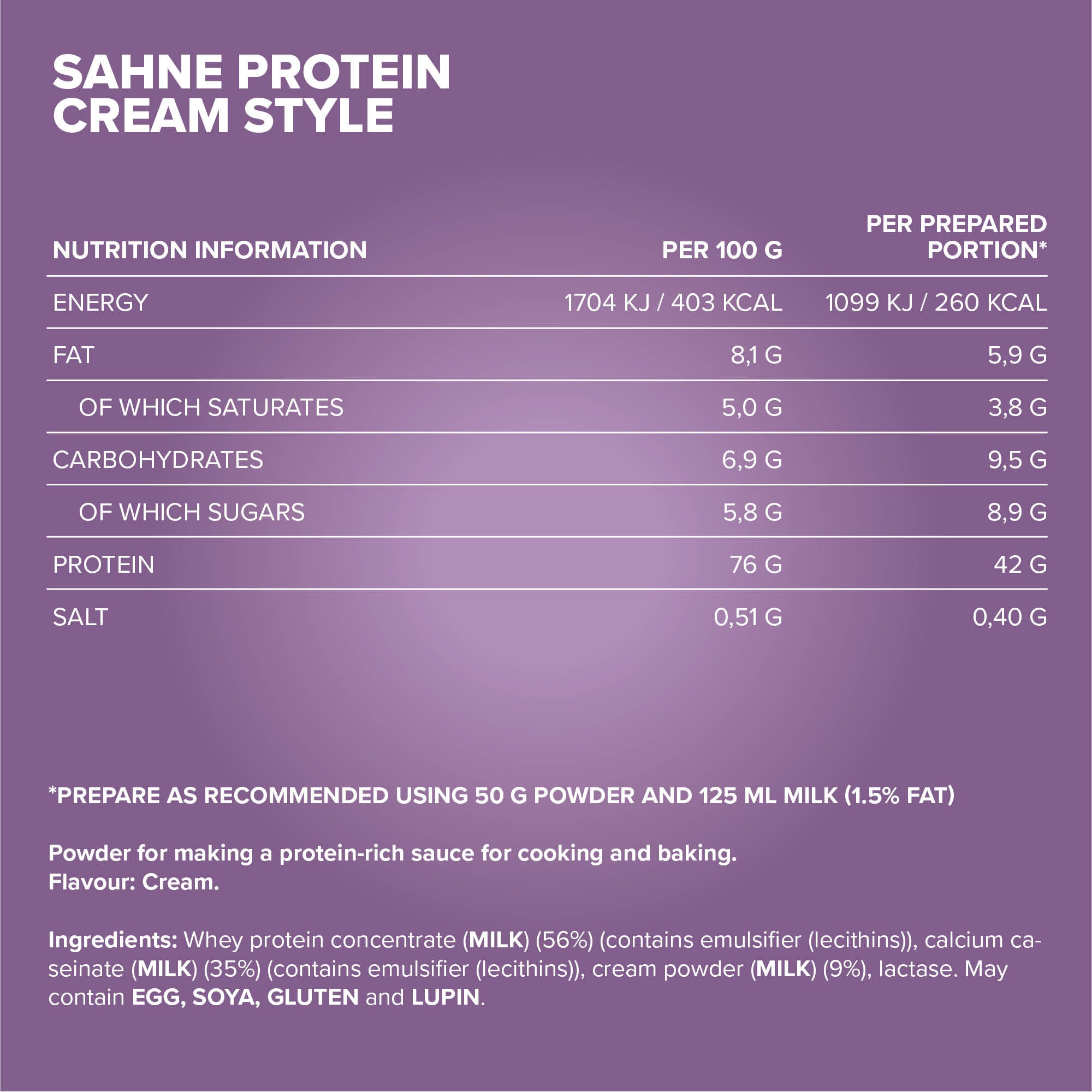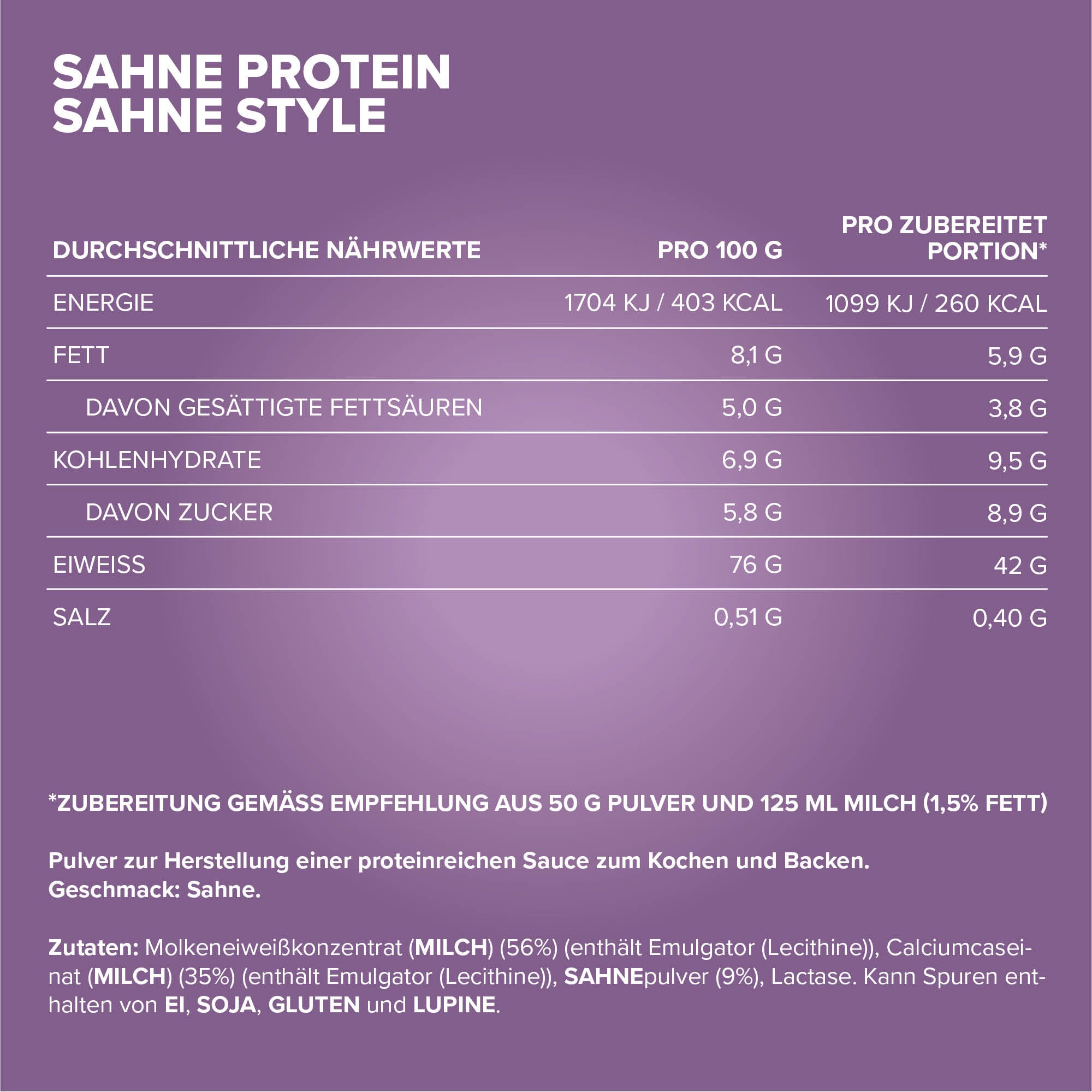 - Fettreduziert: Zubereitet enthält das Sahne Protein bis zu 40 % weniger Fett als herkömmliche Kochsahne – ideal für eine kalorienbewusste Ernährung.