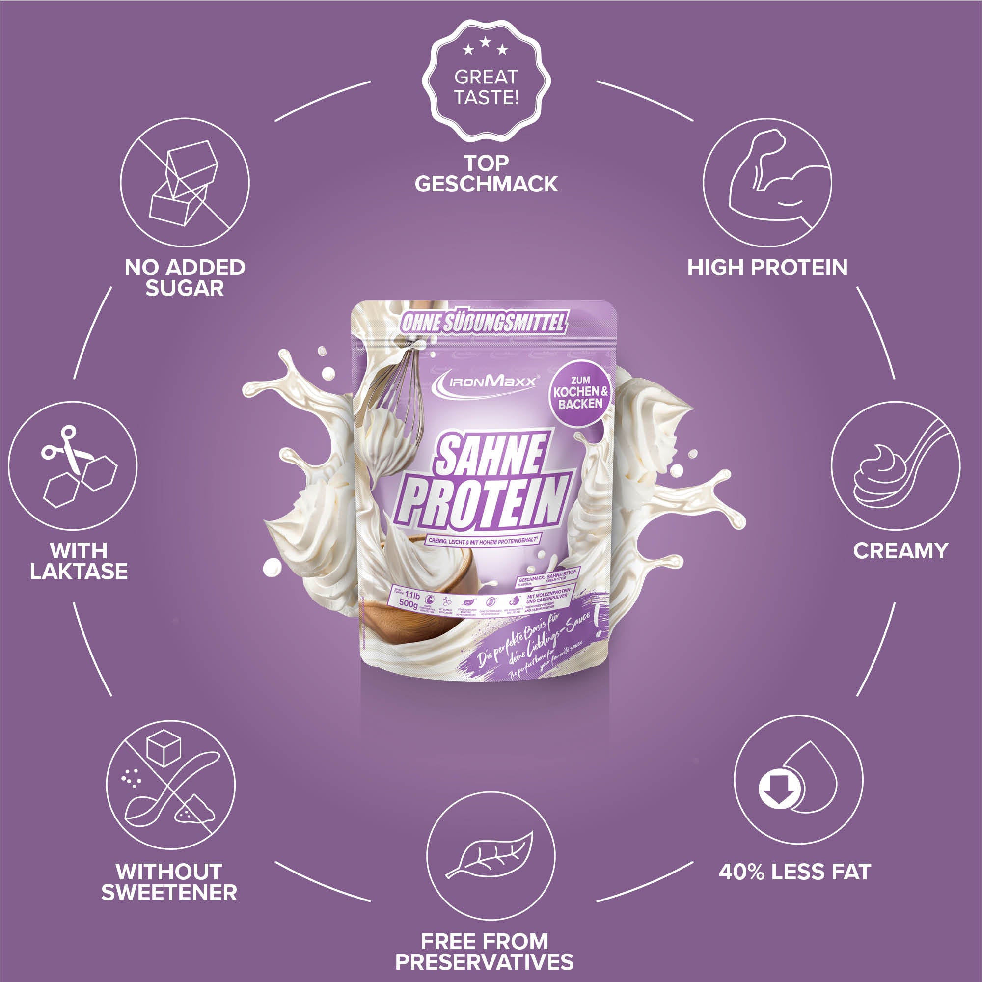 - Hoher Proteingehalt: Mit 76 g Protein pro 100 g ist das IronMaxx® Sahne Protein eine hervorragende Eiweißquelle für Muskelaufbau und -erhalt.