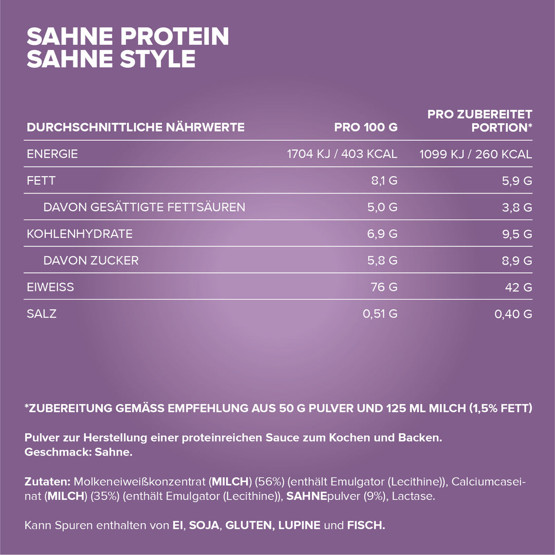 - Fettreduziert: Zubereitet enthält das Sahne Protein bis zu 40 % weniger Fett als herkömmliche Kochsahne – ideal für eine kalorienbewusste Ernährung.