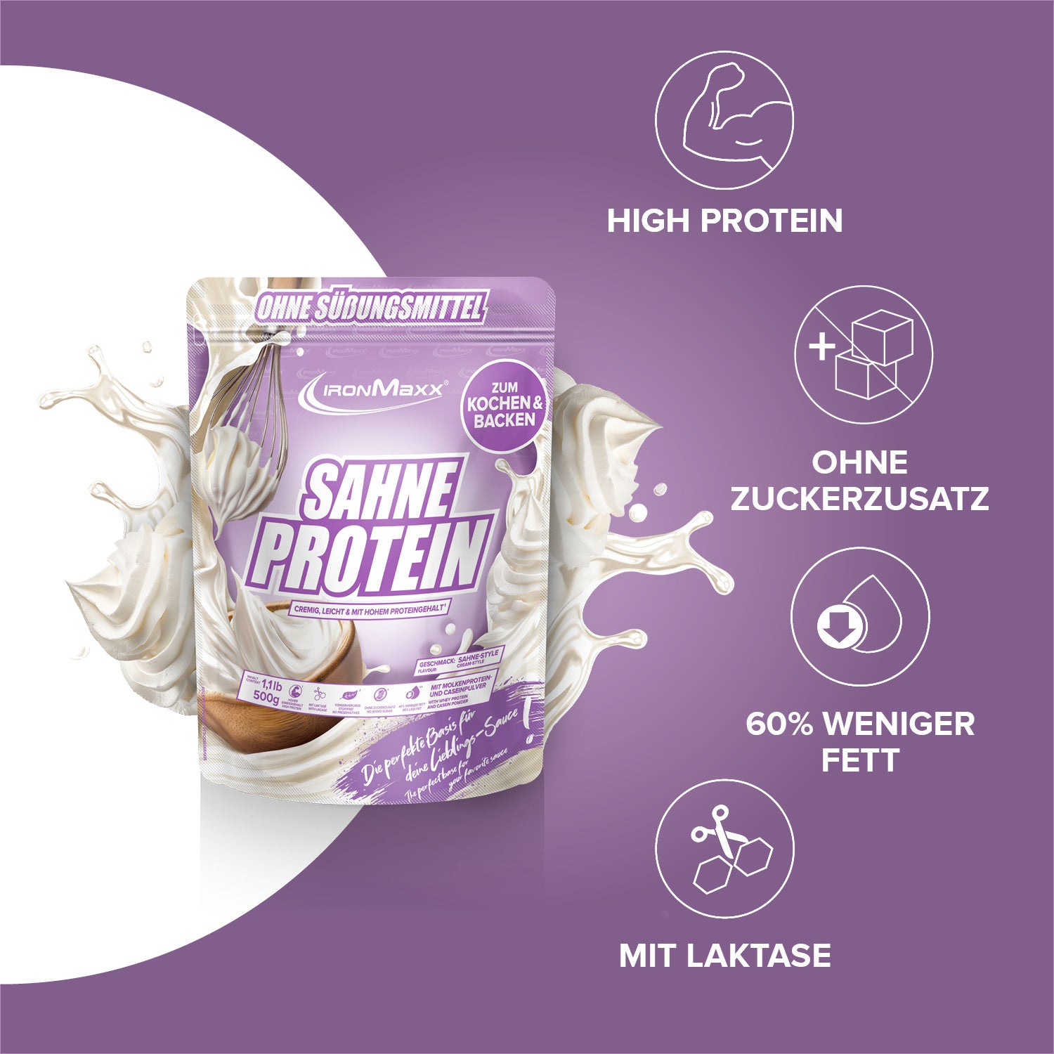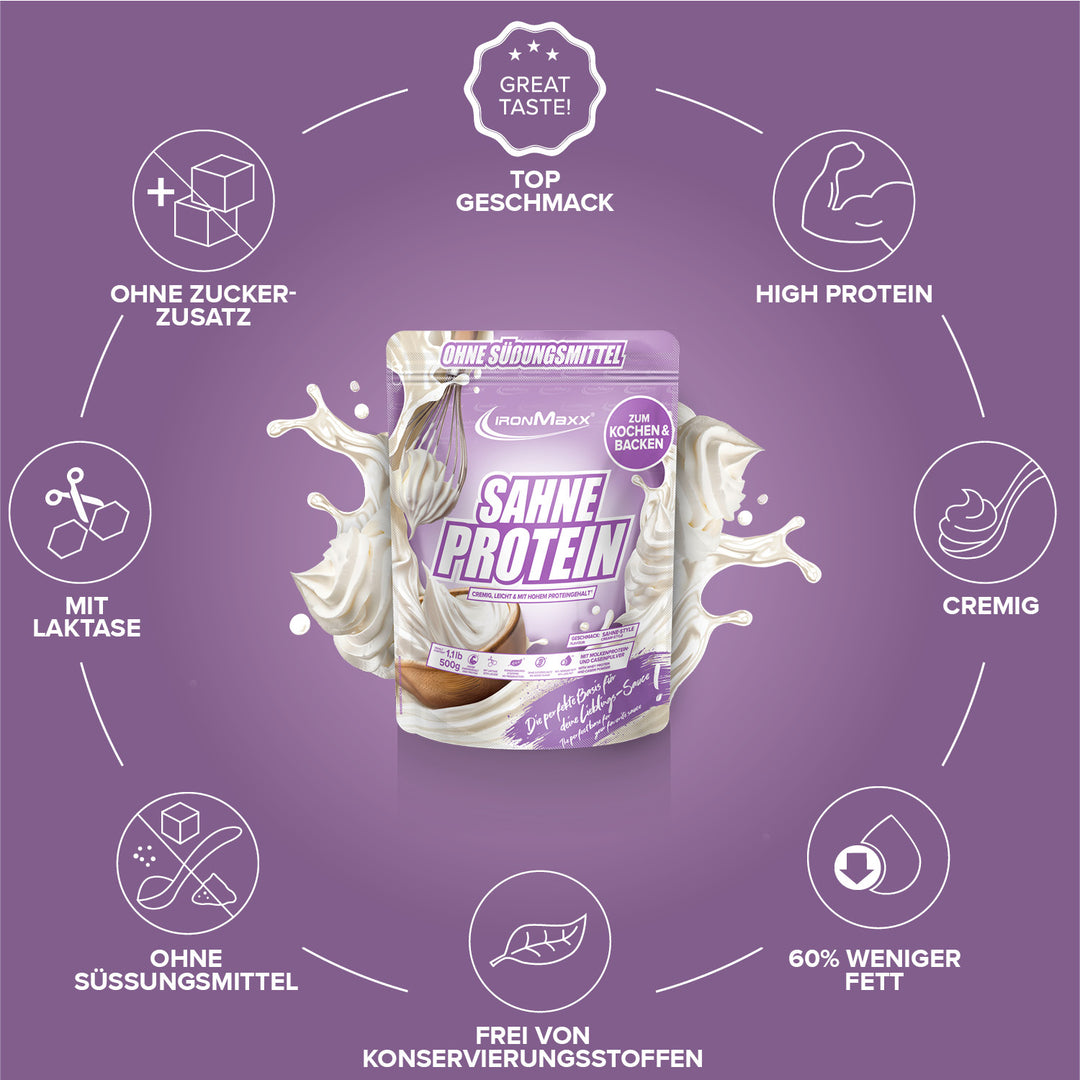- Hoher Proteingehalt: Mit 76 g Protein pro 100 g ist das IronMaxx® Sahne Protein eine hervorragende Eiweißquelle für Muskelaufbau und -erhalt.