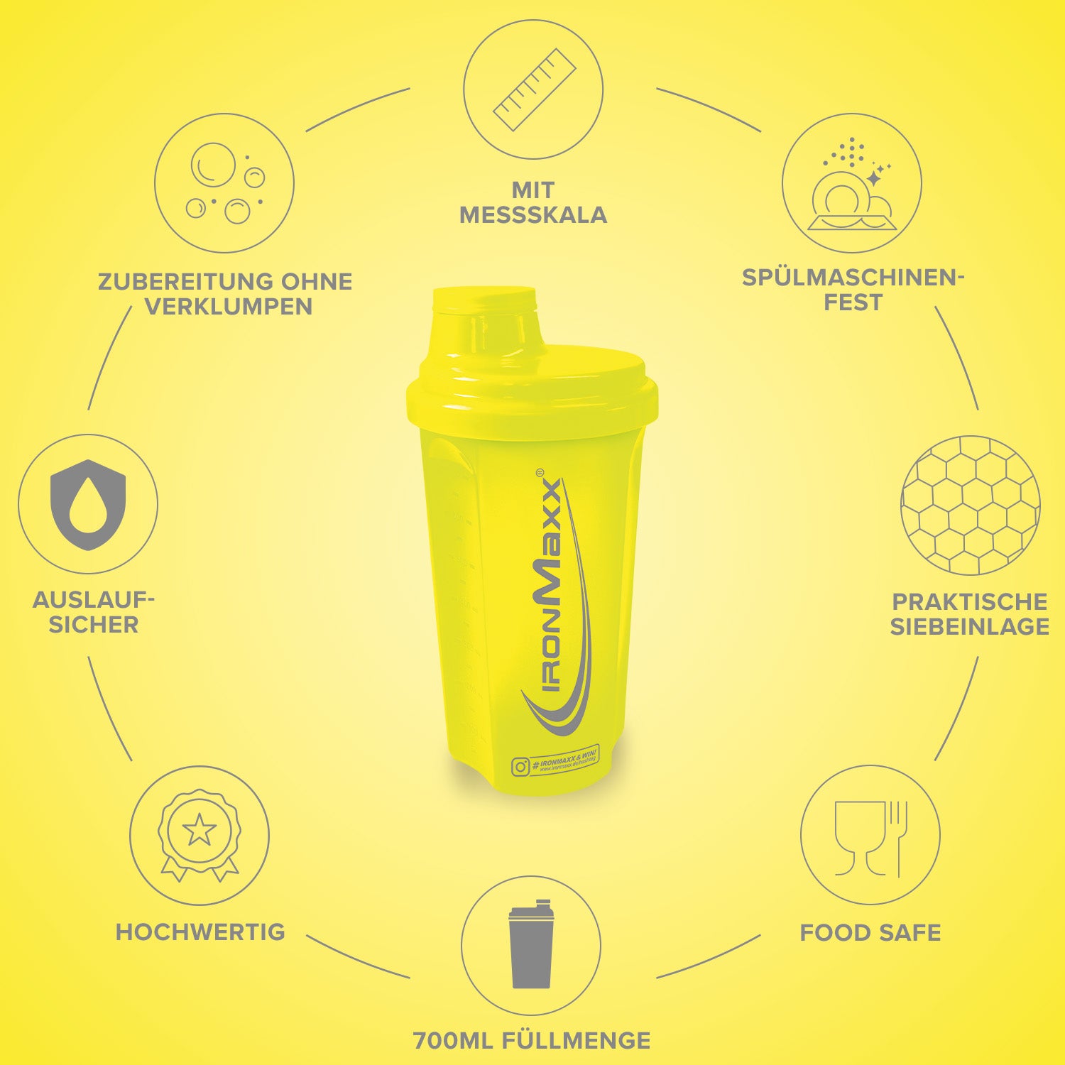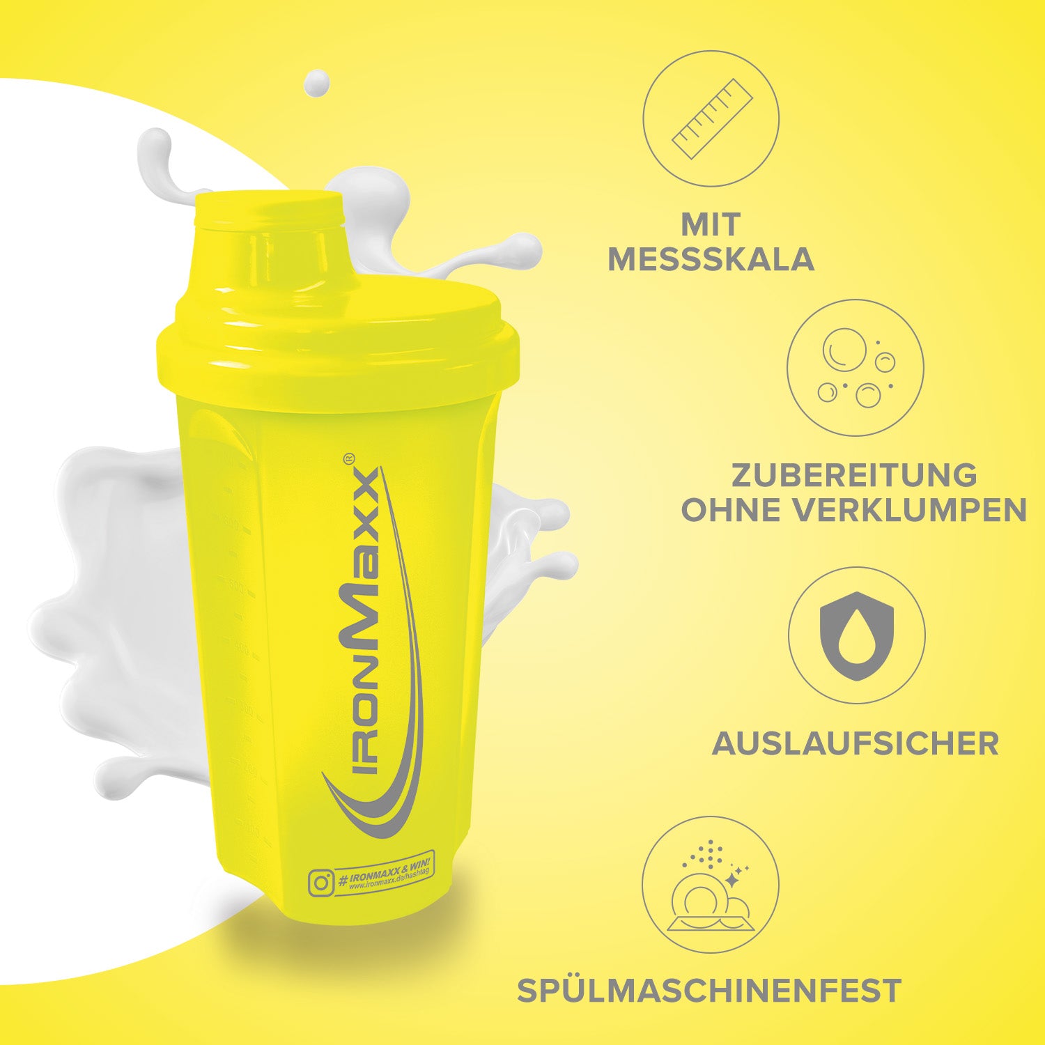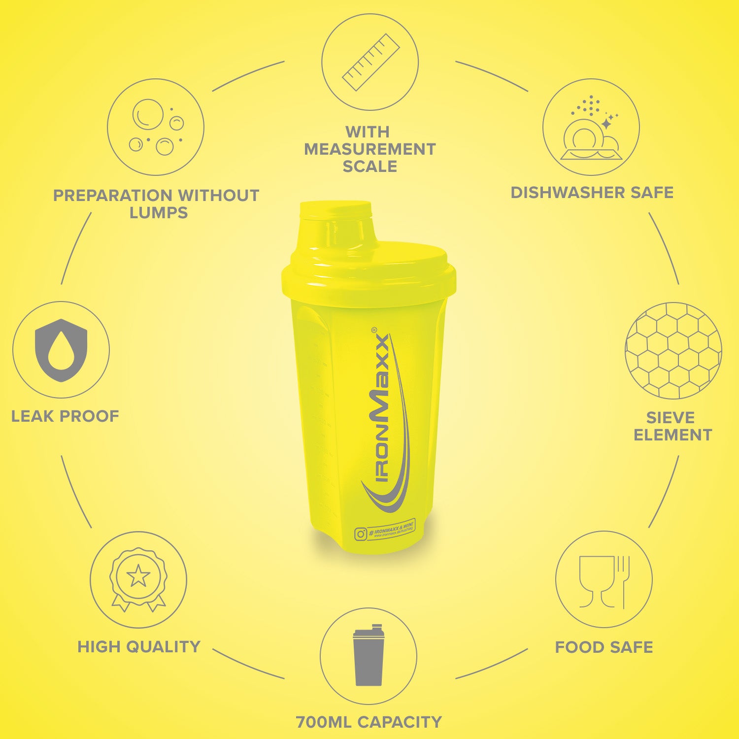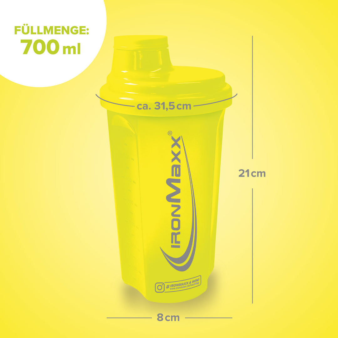 Der klassische IronMaxx® Protein Shaker ist dein verlässlicher Begleiter für cremige, klumpenfreie Shakes – überall und jederzeit. Mit einem Fassungsvermögen von 700 ml, integriertem Sieb und präziser Messskala gelingt dir jedes Mischverhältnis perfekt.