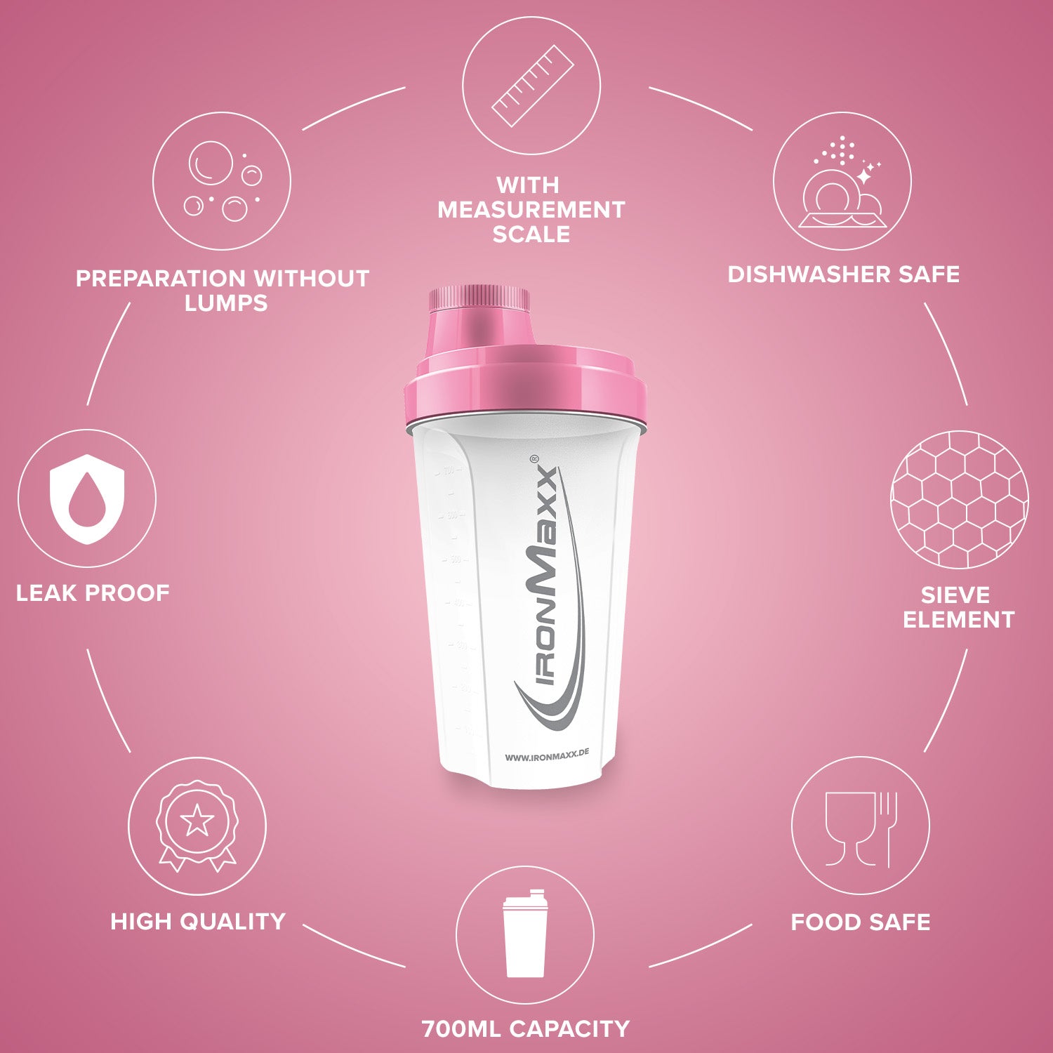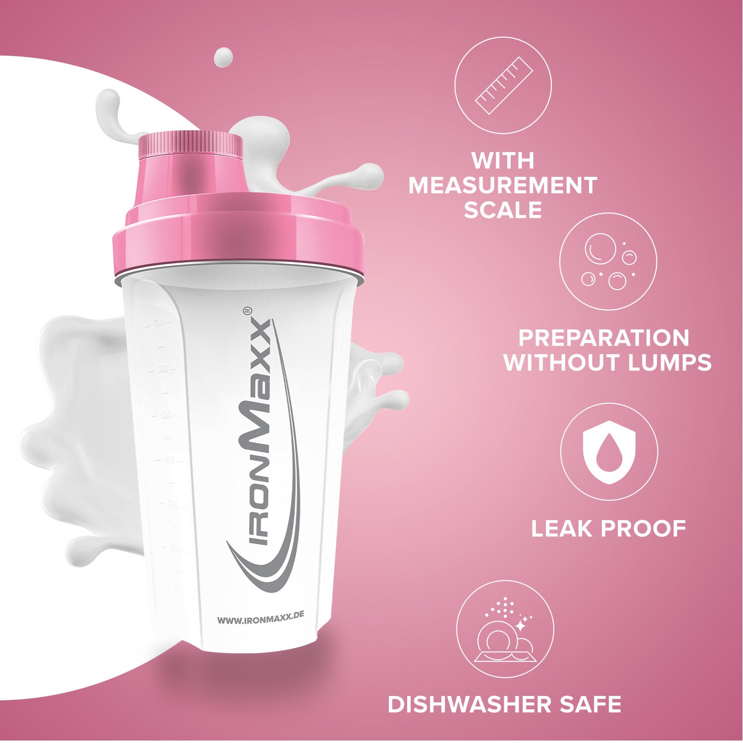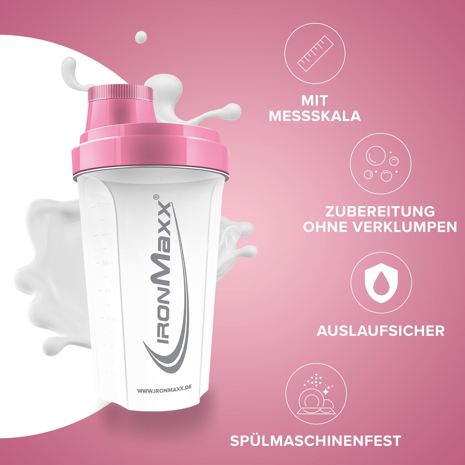 - Klassisch & funktional: Der IronMaxx® Shaker bietet alles, was ein hochwertiger Protein Shaker braucht – einfach, praktisch und effektiv.