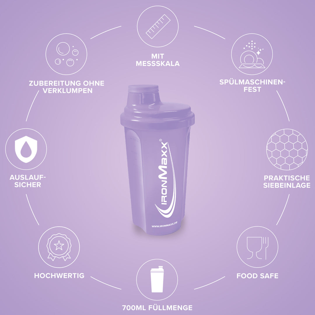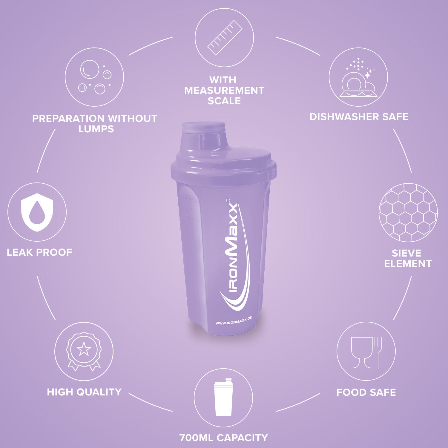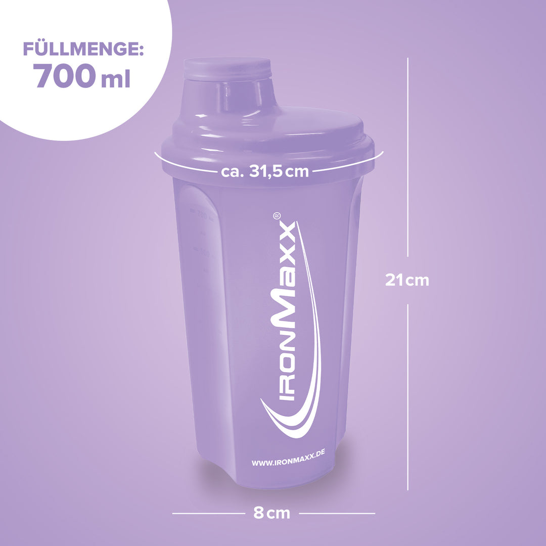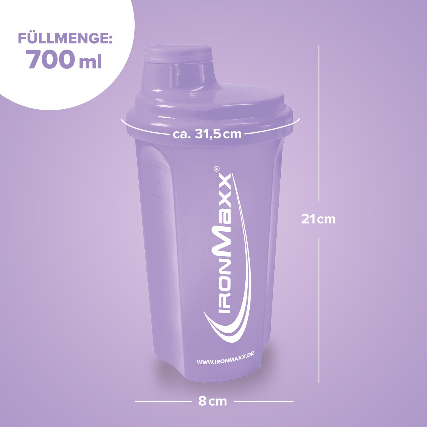 Der klassische IronMaxx® Protein Shaker ist dein verlässlicher Begleiter für cremige, klumpenfreie Shakes – überall und jederzeit. Mit einem Fassungsvermögen von 700 ml, integriertem Sieb und präziser Messskala gelingt dir jedes Mischverhältnis perfekt.