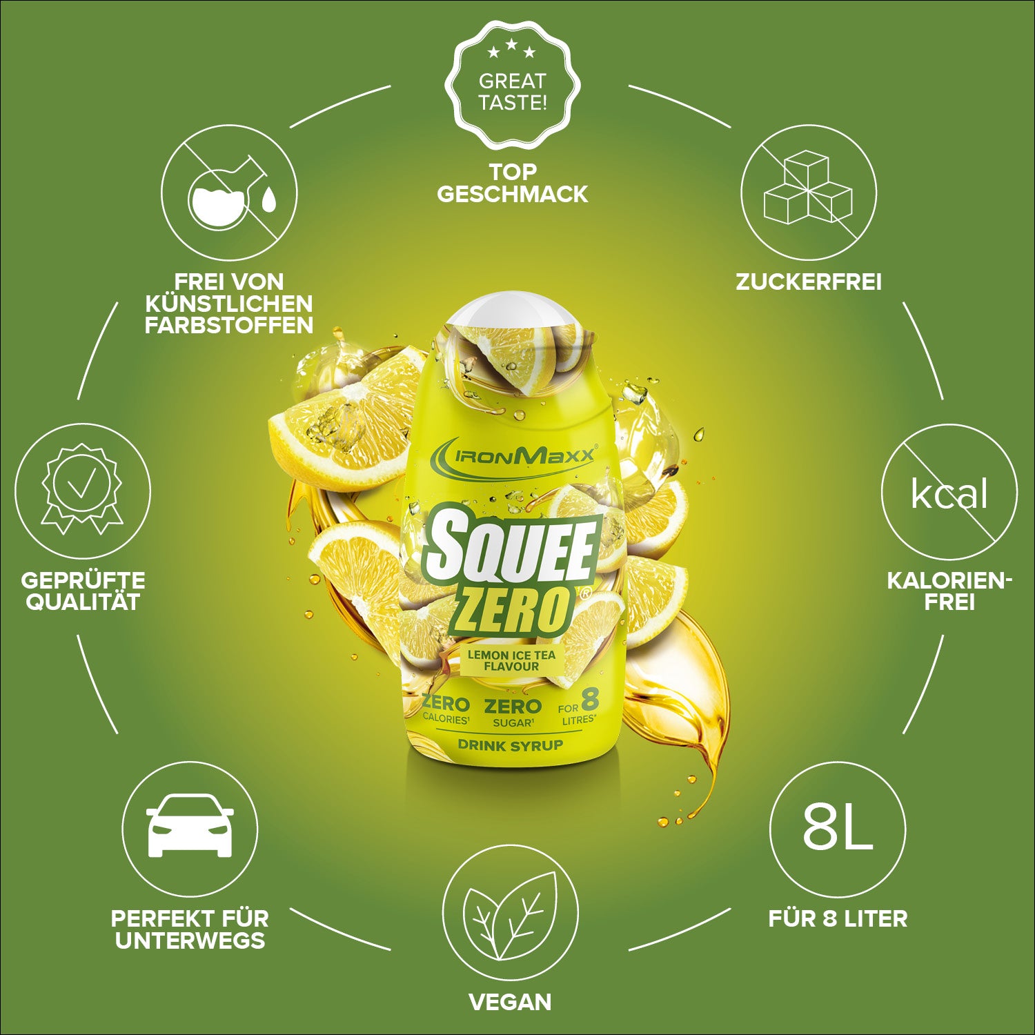 IronMaxx® SqueeZero – das zuckerfreie & kalorienfreie Getränkekonzentrat für mehr Geschmack im Alltag. Mit nur wenigen Tropfen verwandelst du Wasser in ein erfrischendes Fitness-Getränk – ganz ohne Zucker und Kalorien. Jede Flasche (65 ml) ergibt bis zu 8 Liter fertiges Getränk und sorgt dafür, dass du motiviert bleibst, mehr zu trinken.