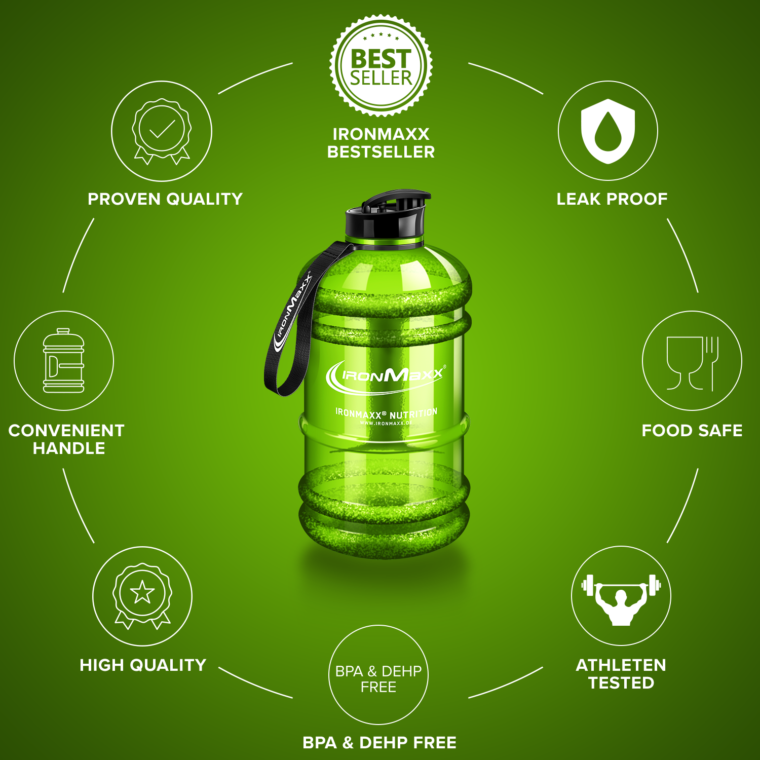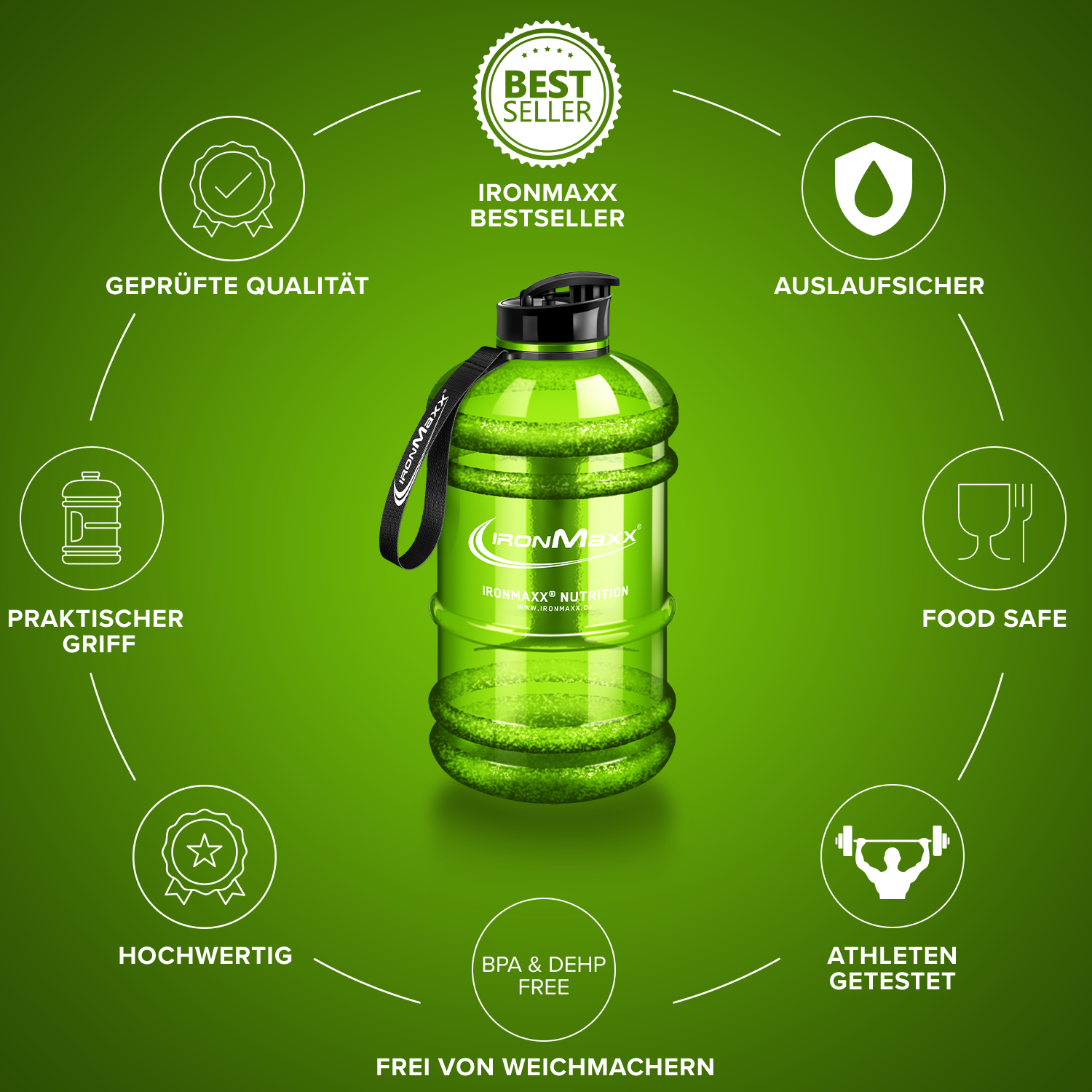 Vergisst du oft, genug Wasser zu trinken? Dann ist die IronMaxx® Water Gallon dein perfekter Begleiter im Alltag. Mit einem Fassungsvermögen von 2,2 Litern hilft dir diese stylische XL-Trinkflasche, deinen Flüssigkeitshaushalt optimal zu decken – egal ob im Gym, im Büro oder unterwegs.