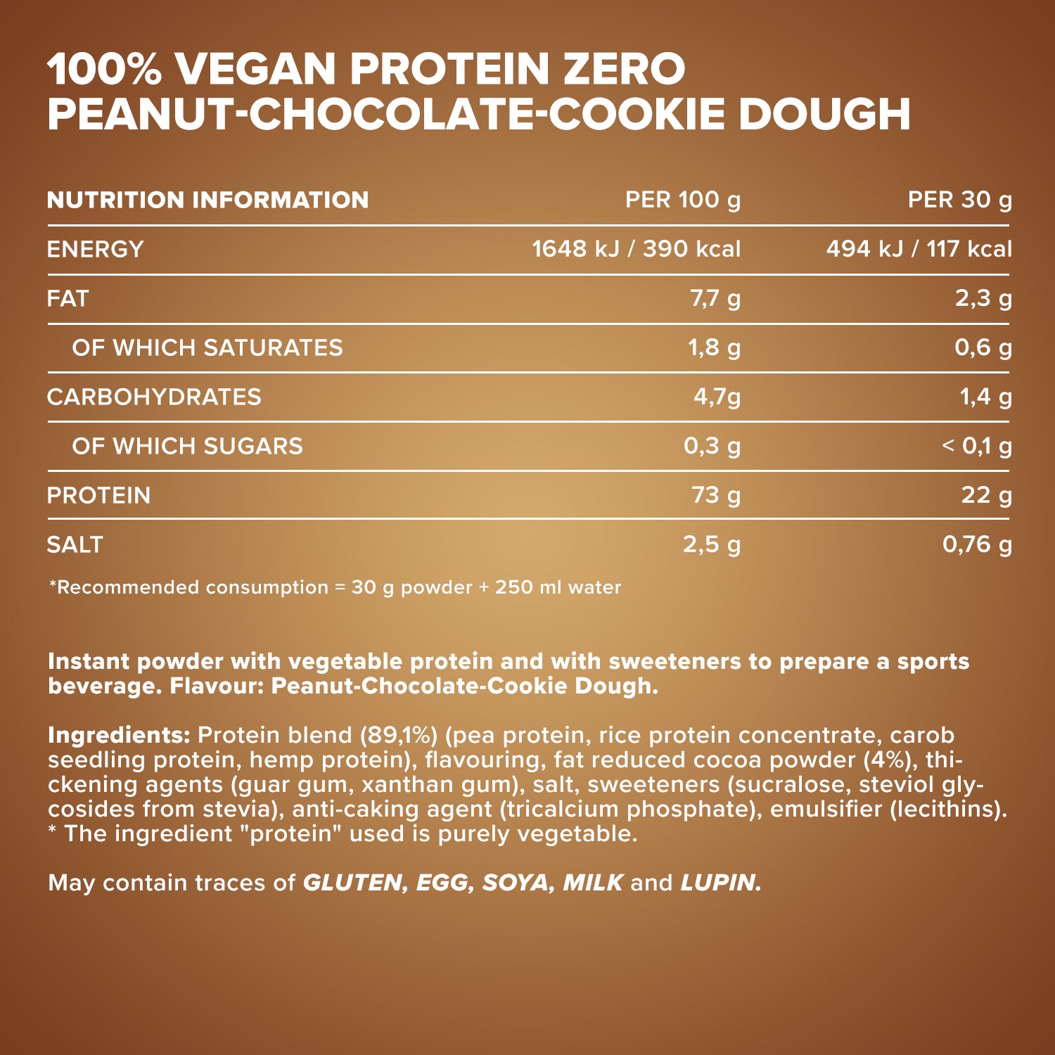 Verkehrsbezeichnung: Instantpulver mit pflanzlichem Protein und mit Süßungsmitteln zum Herstellen eines Sportgetränks. Geschmack: Erdnuss-Schokoladen Keksteig