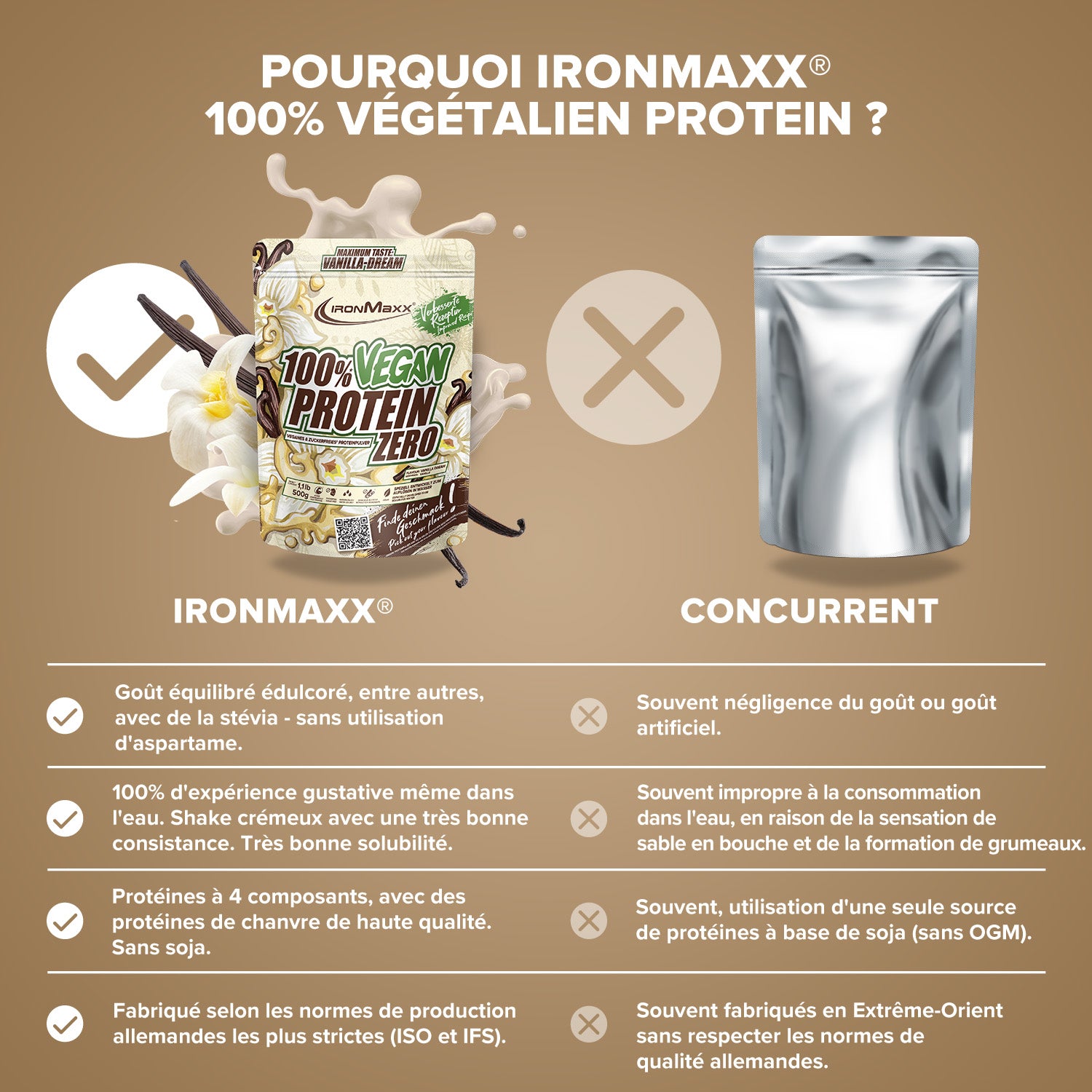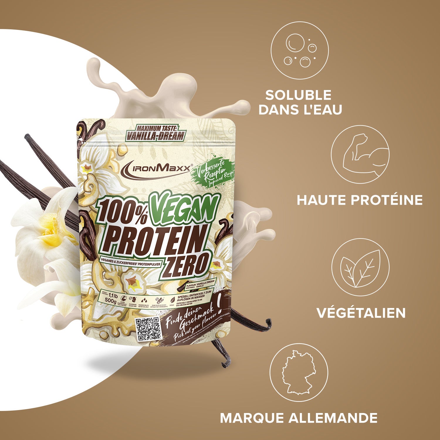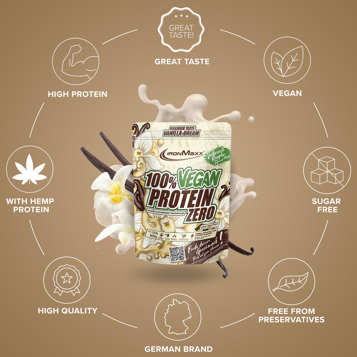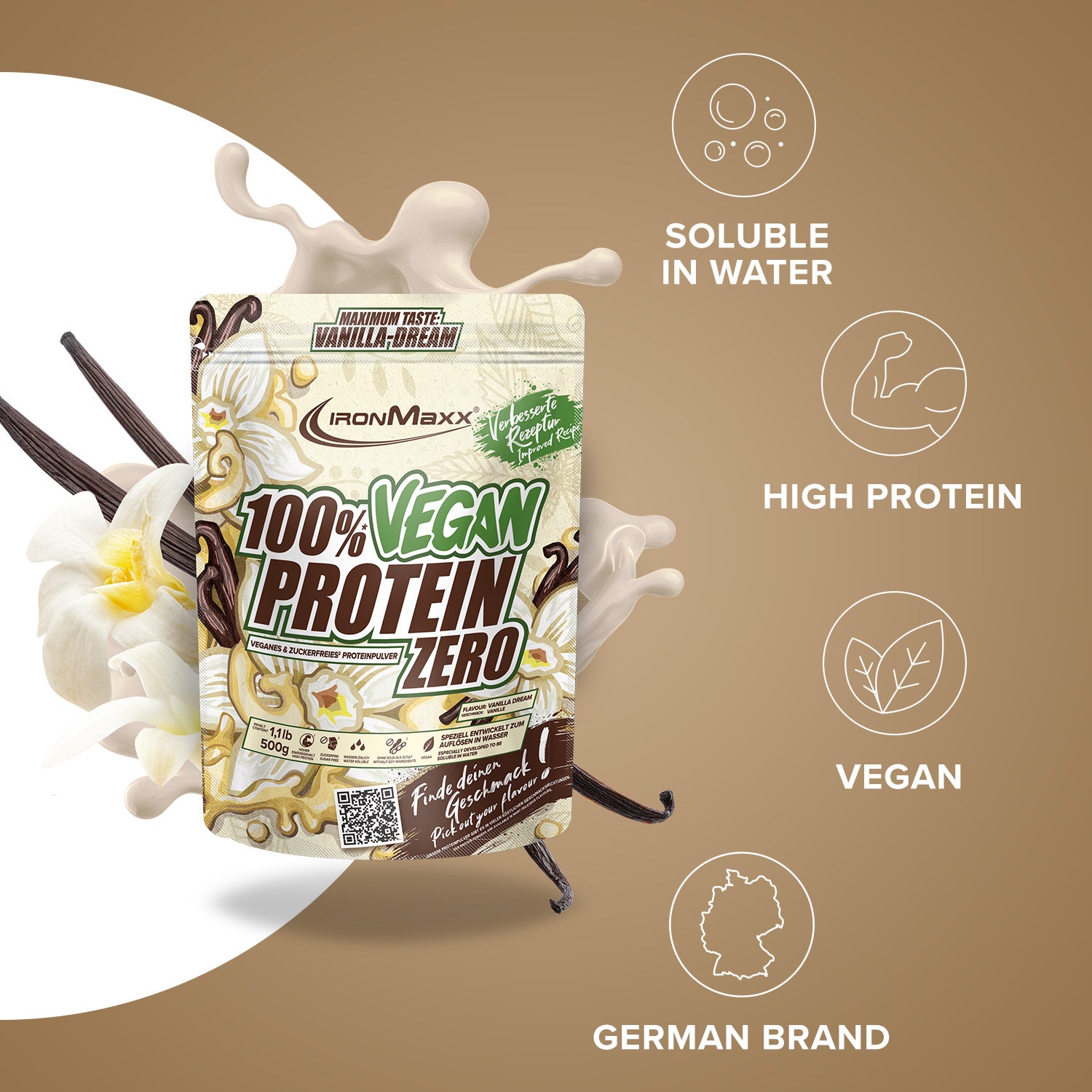 - IronMaxx® Vegan Protein Zero – hochdosiertes veganes Proteinpulver für deinen pflanzlichen, eiweißreichen Alltag.