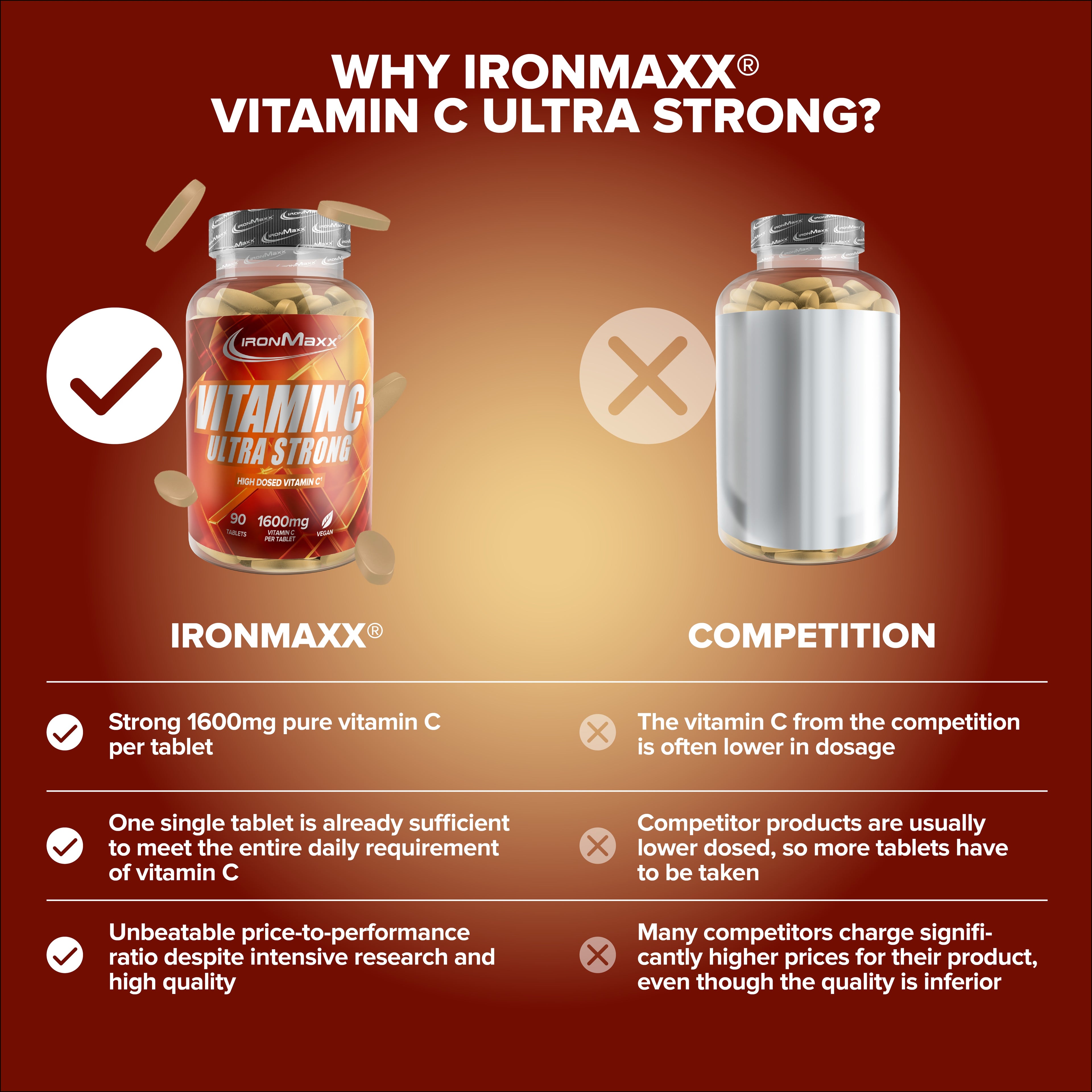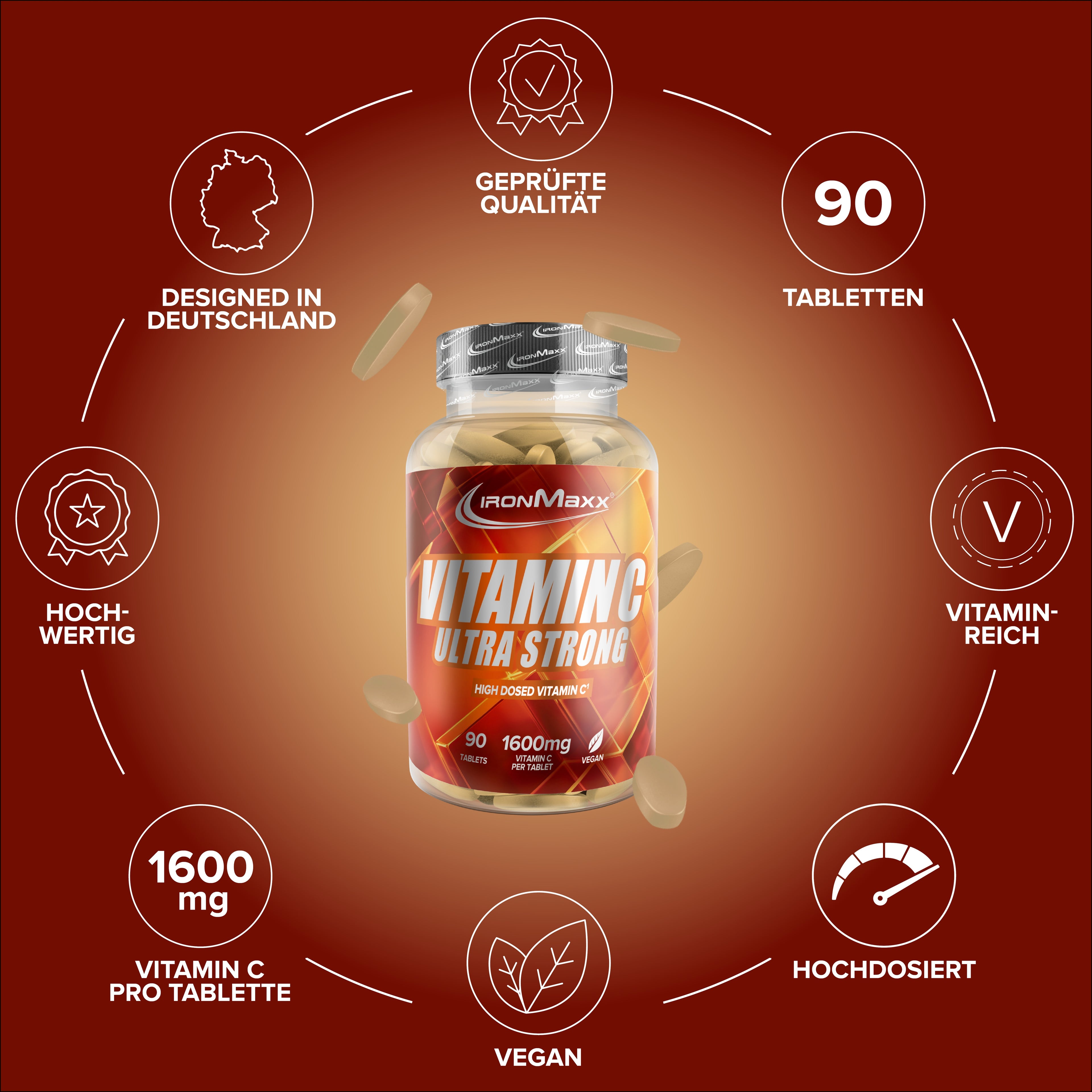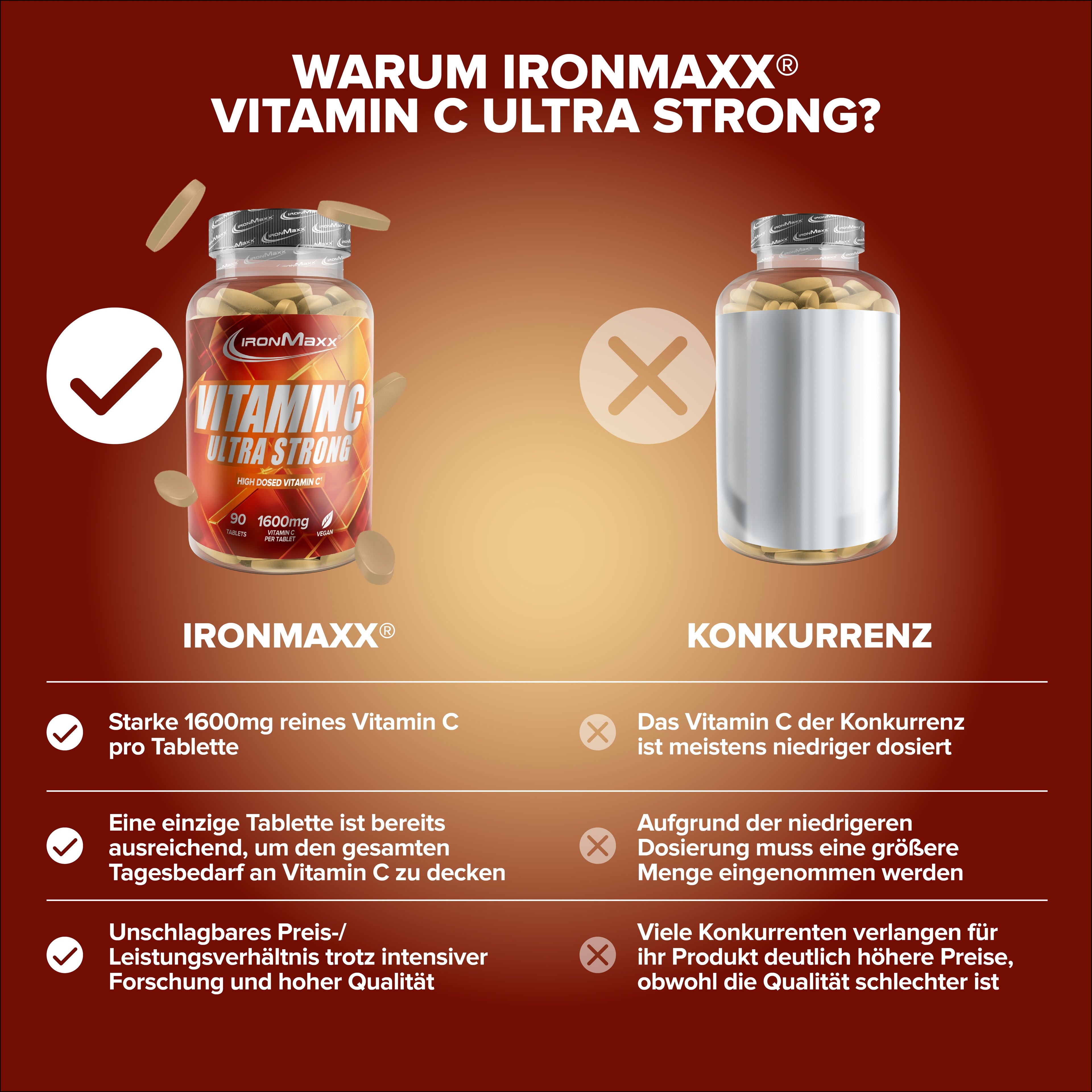 1600MG VITAMIN C PRO TABLETTE: Hochdosierte Vitamin-C-Quelle – eine Tablette täglich zur ergänzenden Versorgung.
