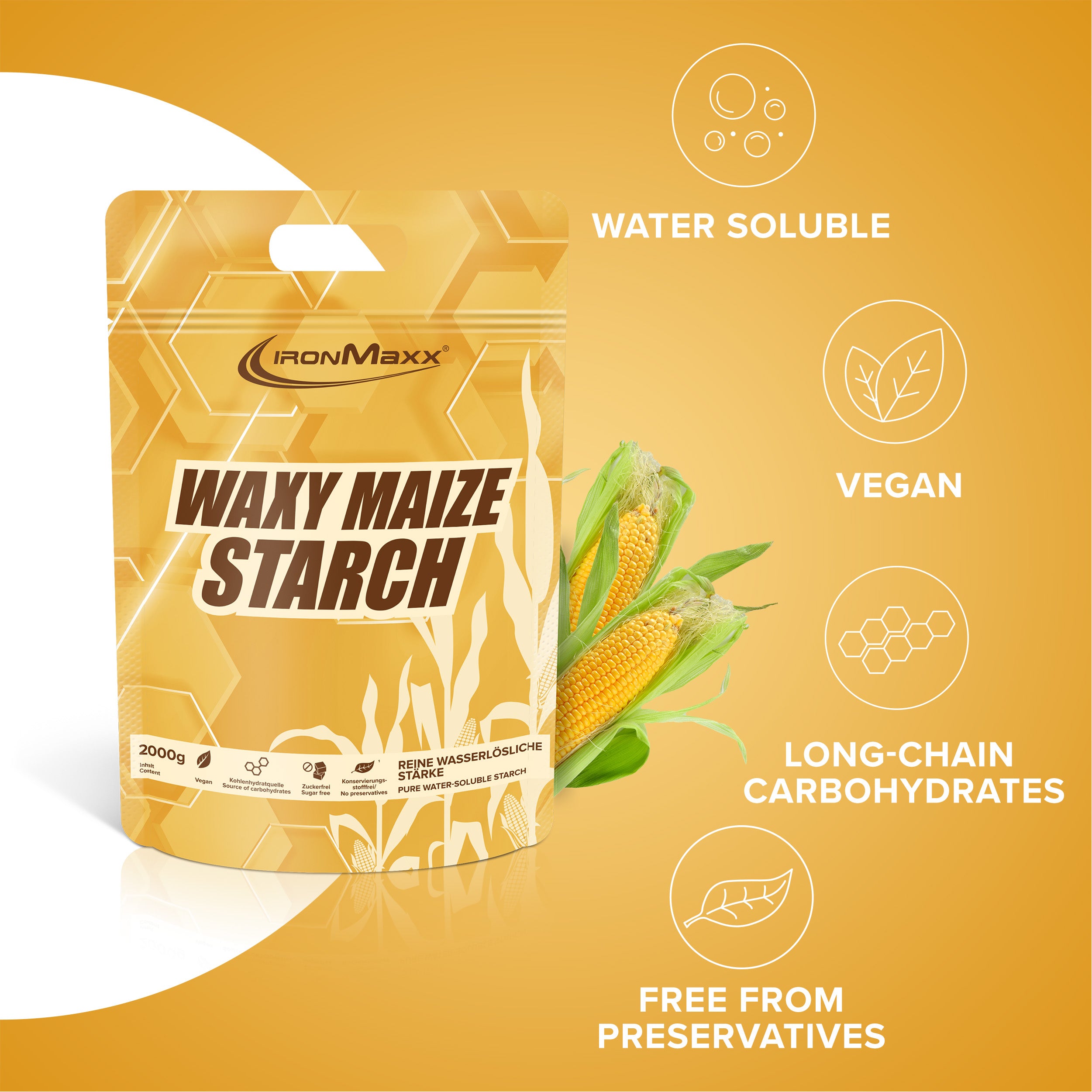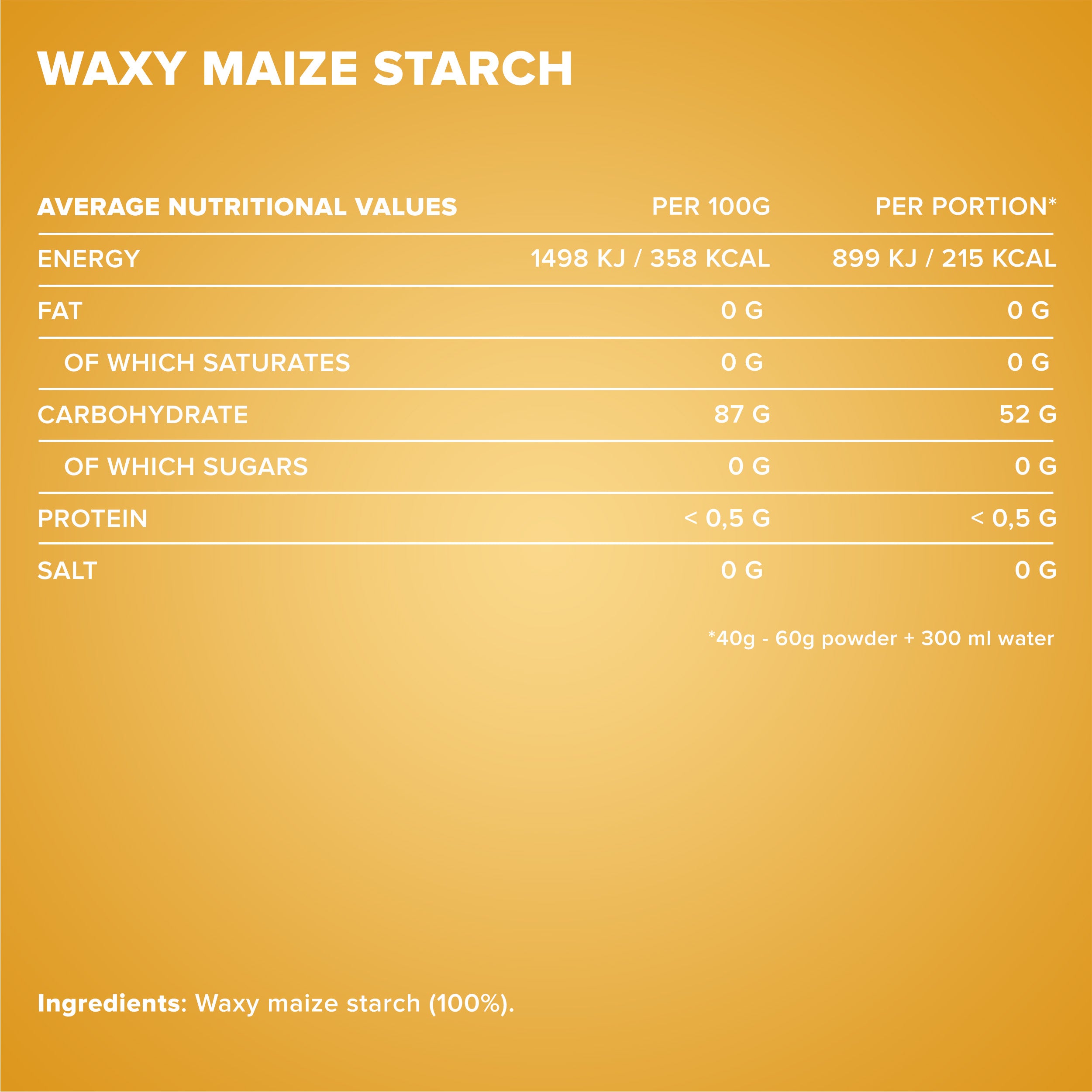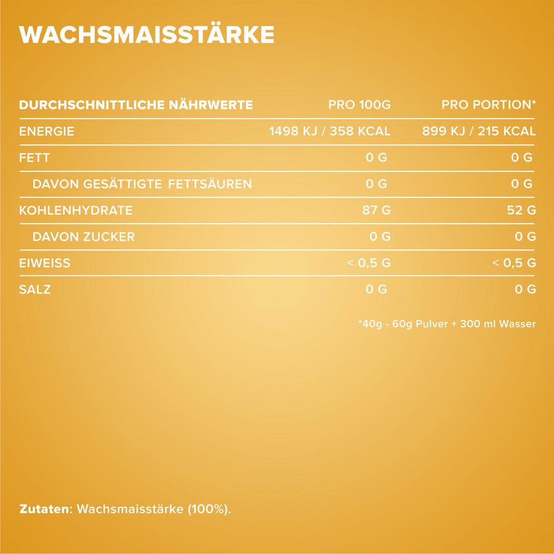 - Natürliche Energiequelle: Vollkommen natürliche Kohlenhydratquelle aus reiner Wachsmaisstärke