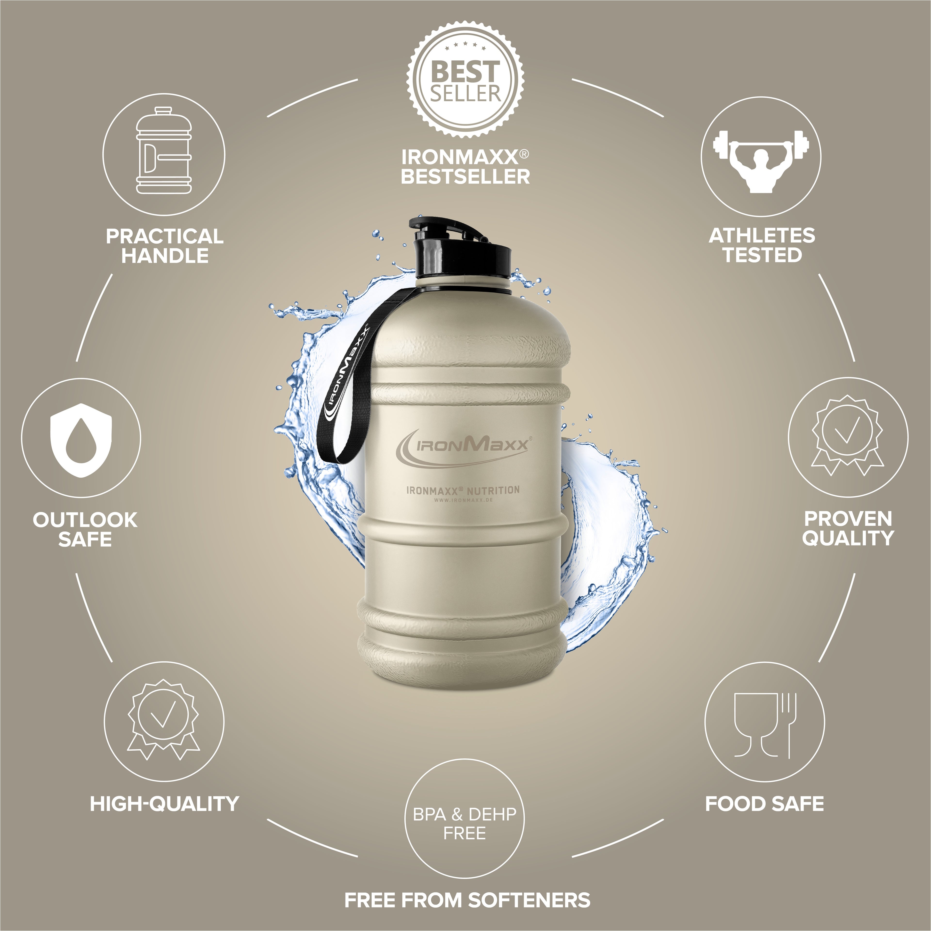 - IronMaxx® hat die Wassergallone mit einem ergonomischen Tragegriff für den optimalen Transport ausgestattet!