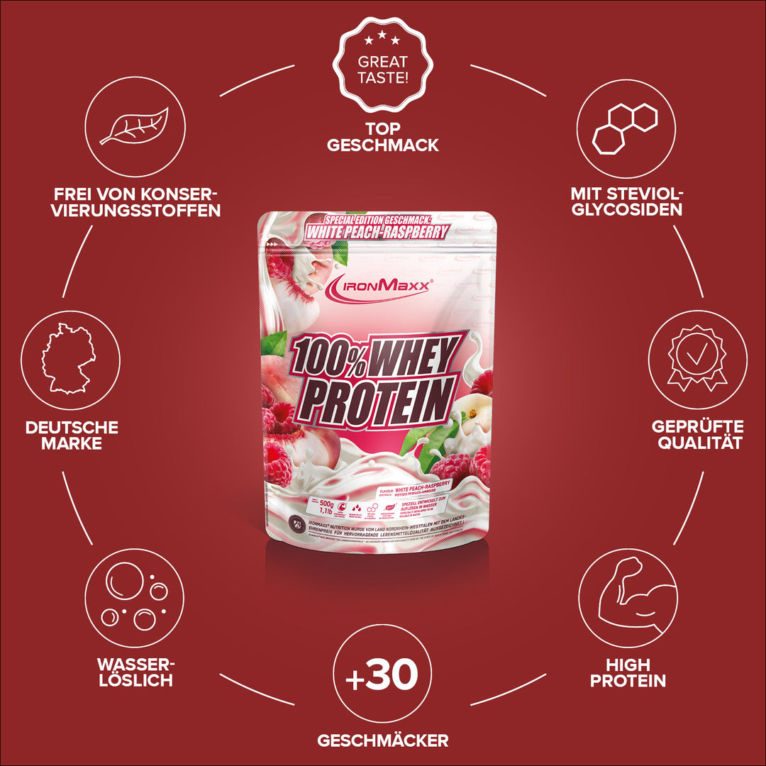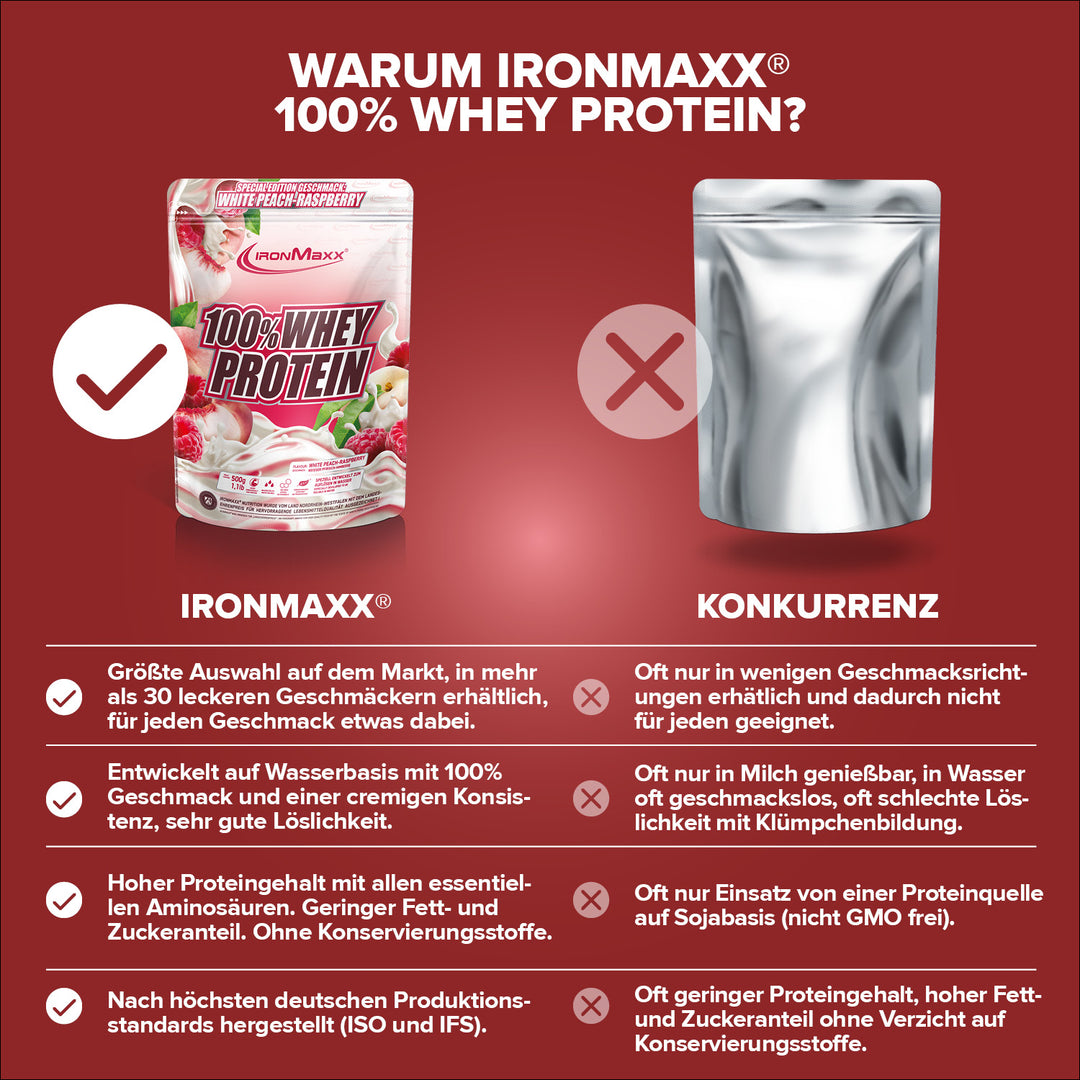 IronMaxx® 100% Whey Protein gehört zu den beliebtesten Eiweißshakes für Muskelaufbau, Regeneration und Diätphasen. Mit bis zu 80 % Eiweiß, einem vollständigen Aminosäurenprofil (inklusive BCAAs und EAAs) sowie einem cremigen Geschmack ist es der ideale Begleiter für deinen Fitnessalltag.